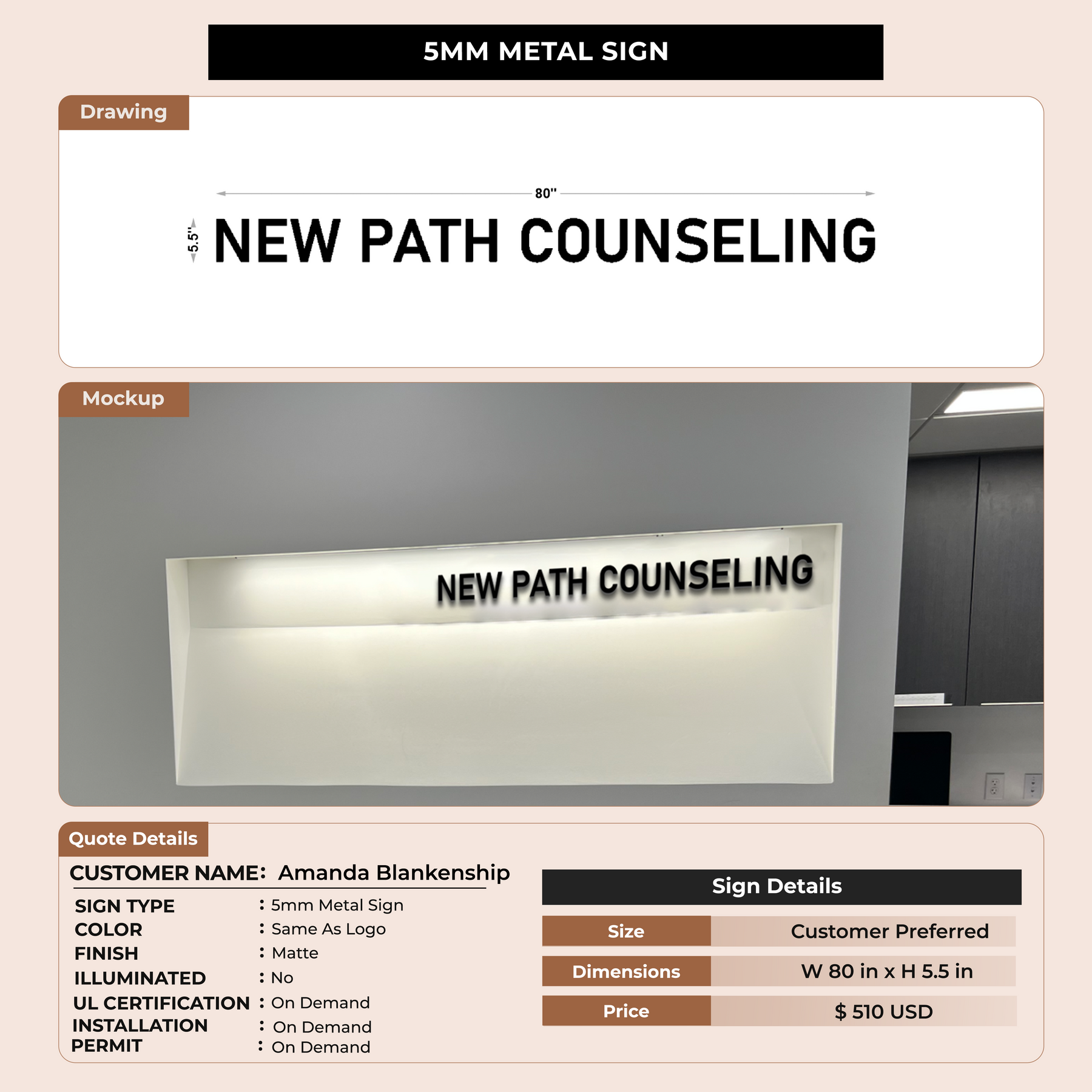 5mm Metal Sign for Amanda Blankenship
