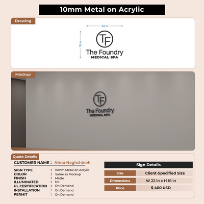 10mm Metal on Acrylic Sign for Nima Naghshineh