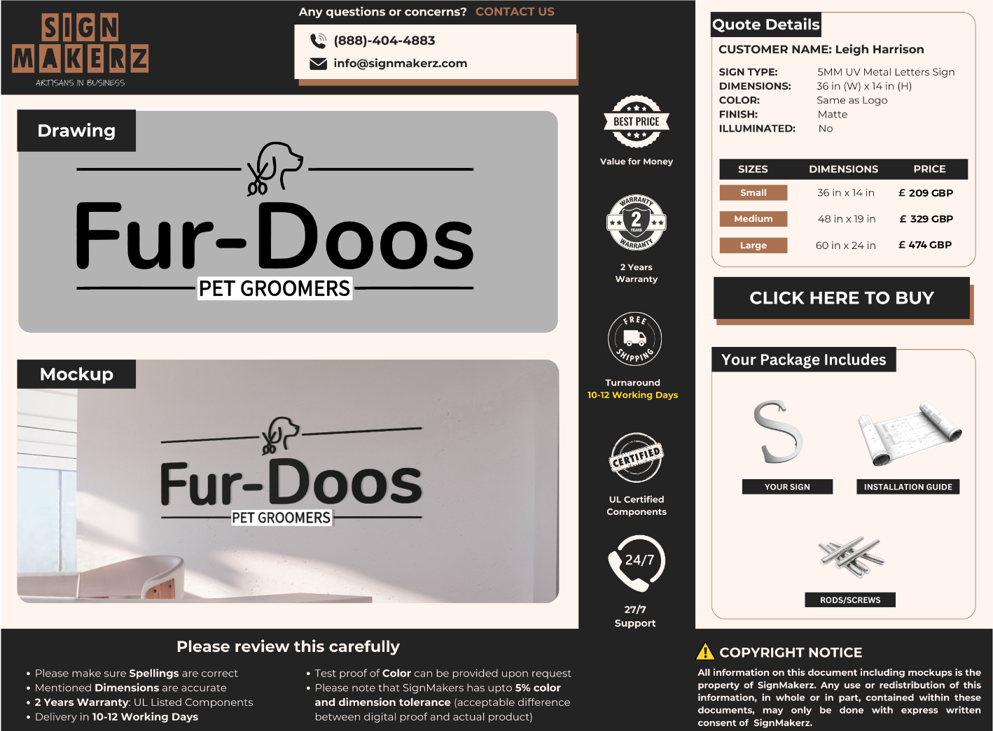 Crafted with premium material, this signage will elevate your business image, precisely mirroring your logo for a professional look.