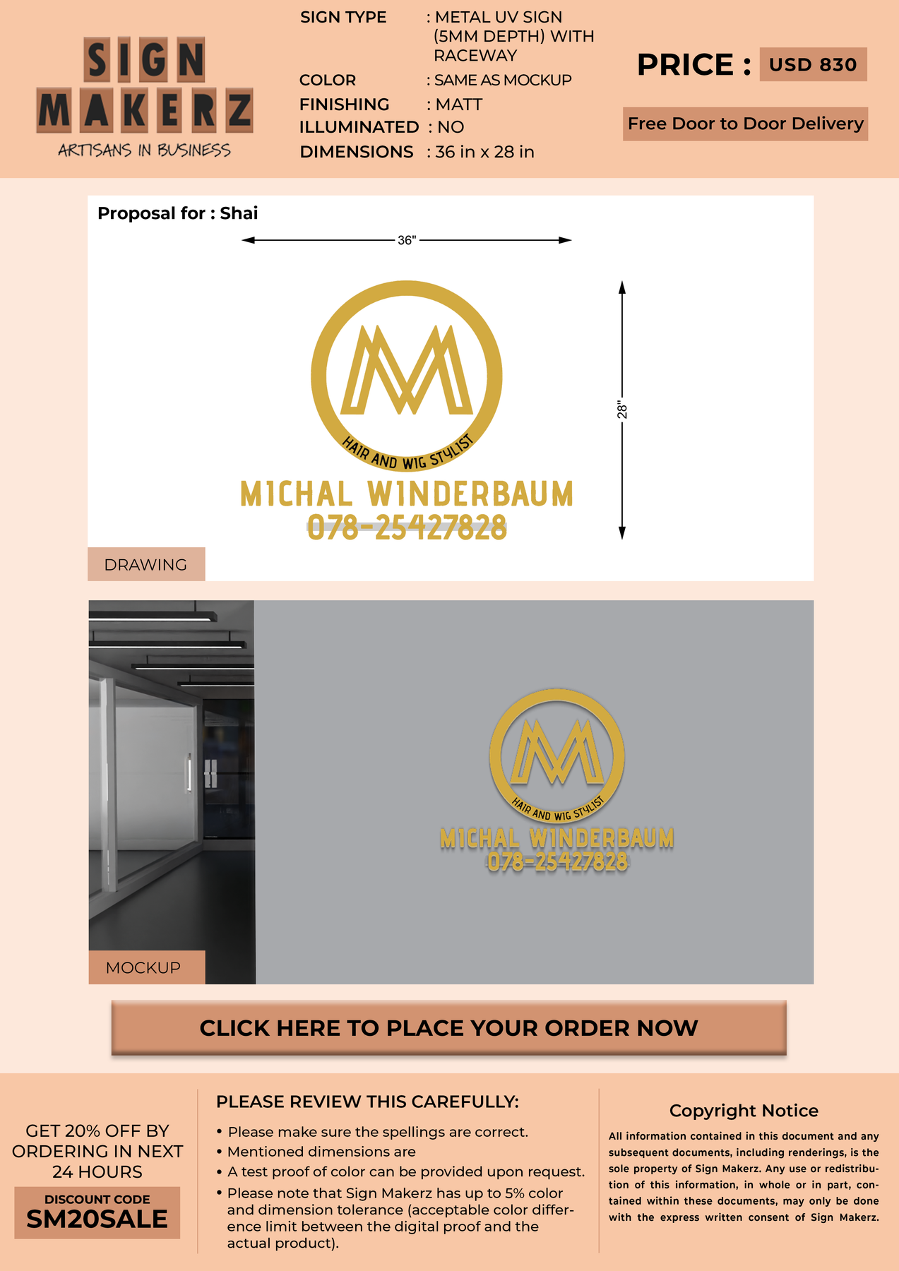 Crafted with premium material, this signage will elevate your business image, precisely mirroring your logo for a professional look.