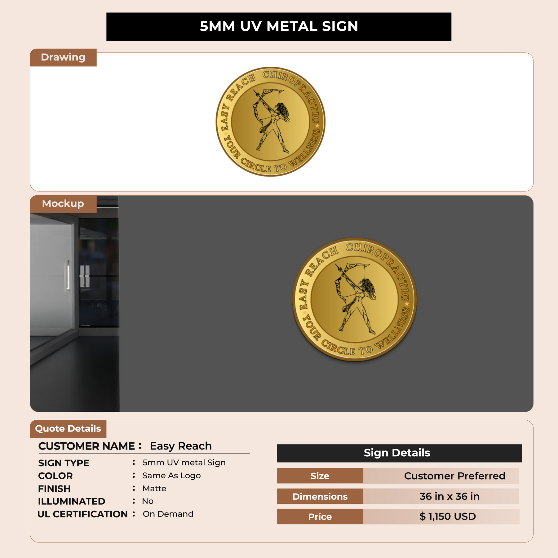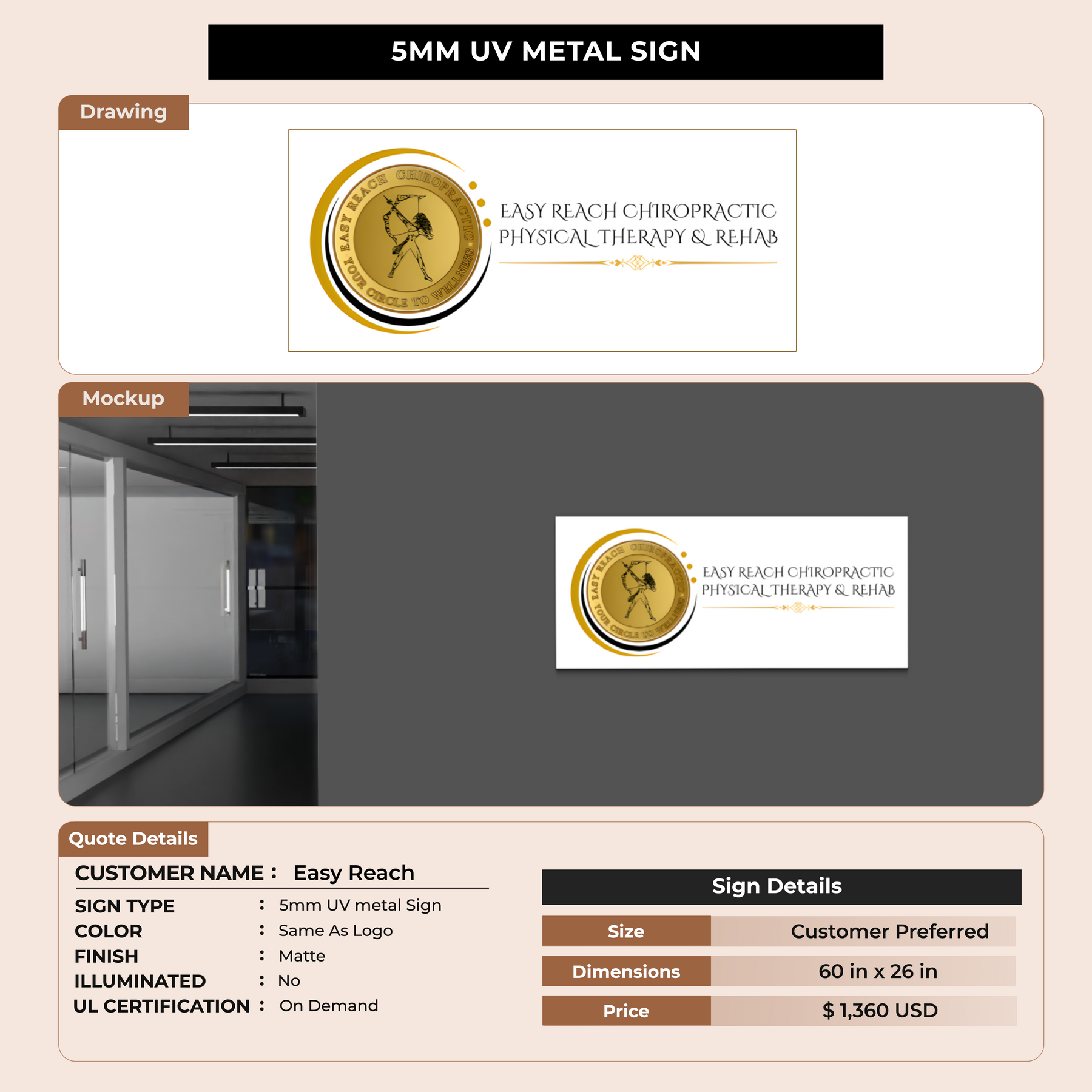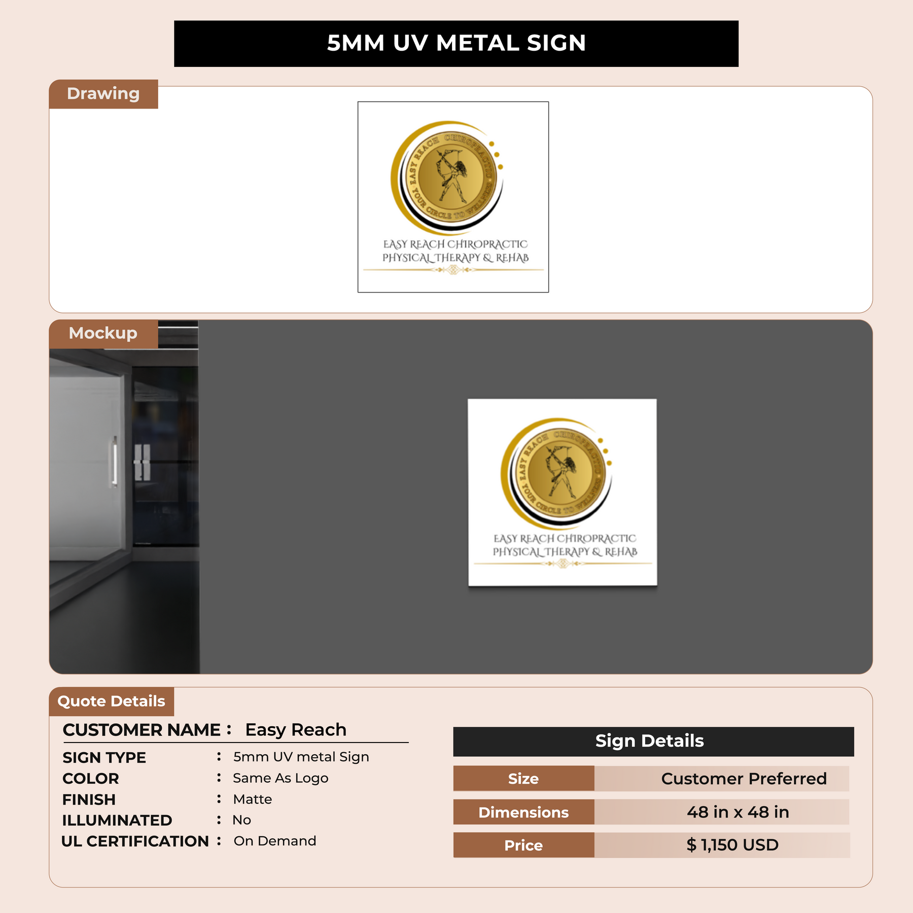5MM UV Metal Sign for Easy Reach Chiropractic