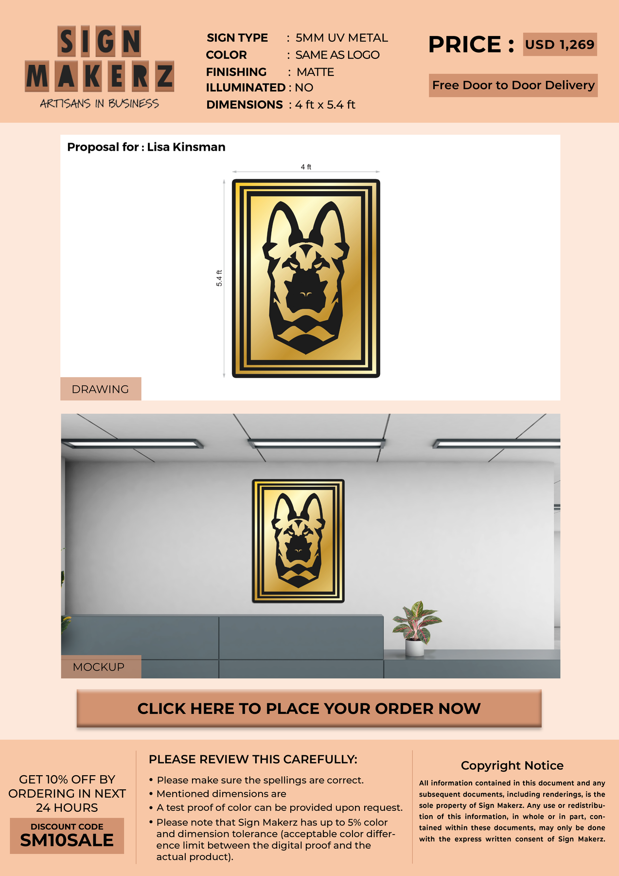 Crafted with premium material, this signage will elevate your business image, precisely mirroring your logo for a professional look.