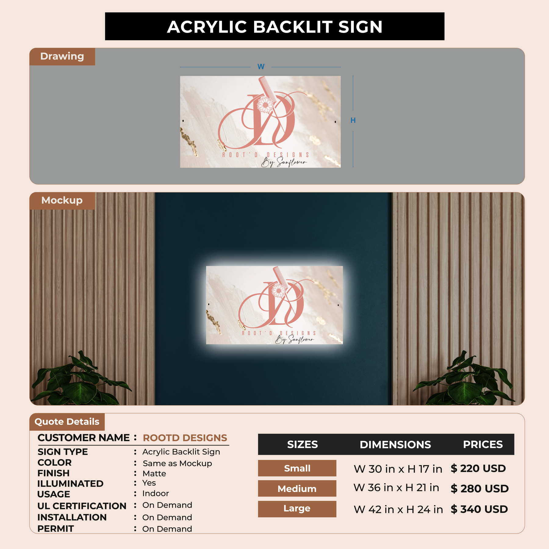 Acrylic Backlit Sign For ROOTD DESIGNS