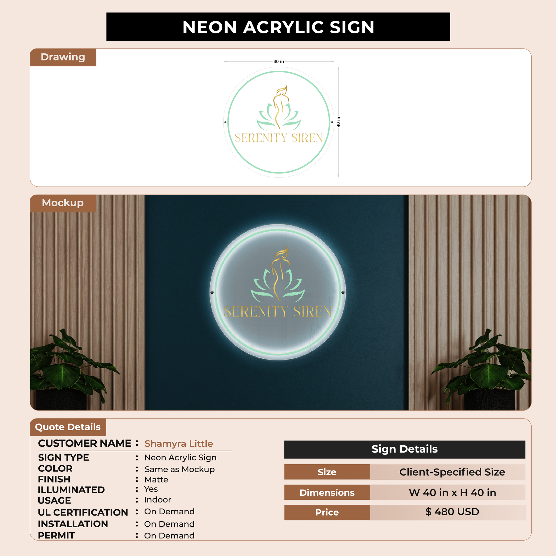 Acrylic backlit sign for Shamyra Little