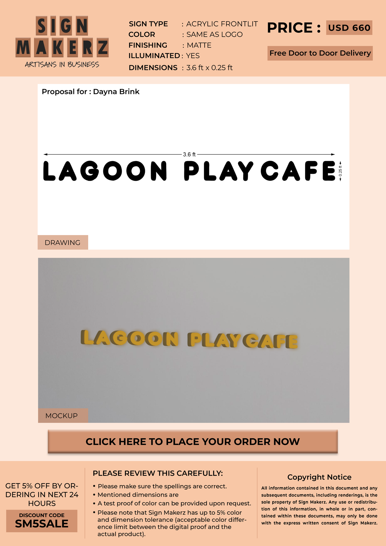 Crafted with premium material, this signage will elevate your business image, precisely mirroring your logo for a professional look.