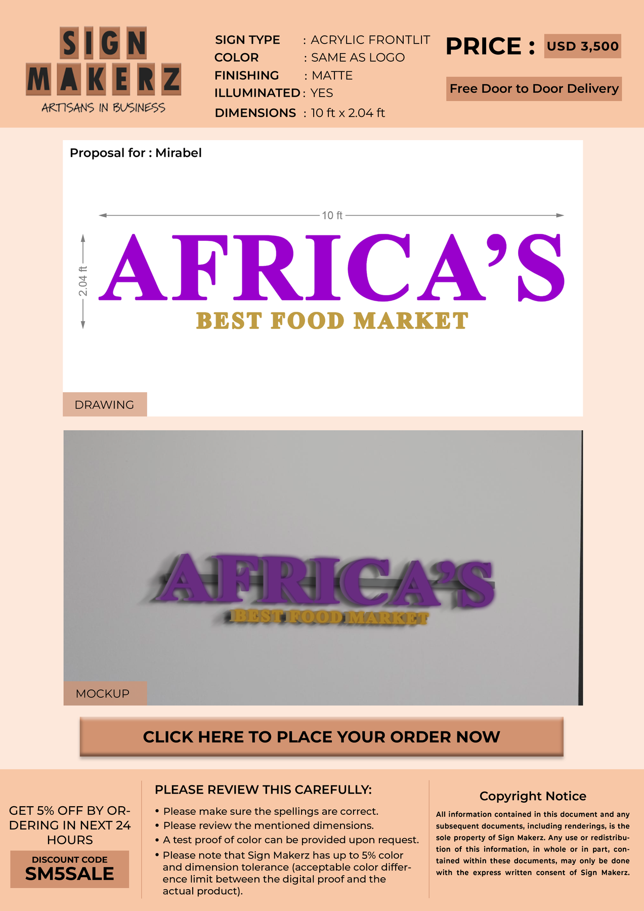 Crafted with premium material, this signage will elevate your business image, precisely mirroring your logo for a professional look.