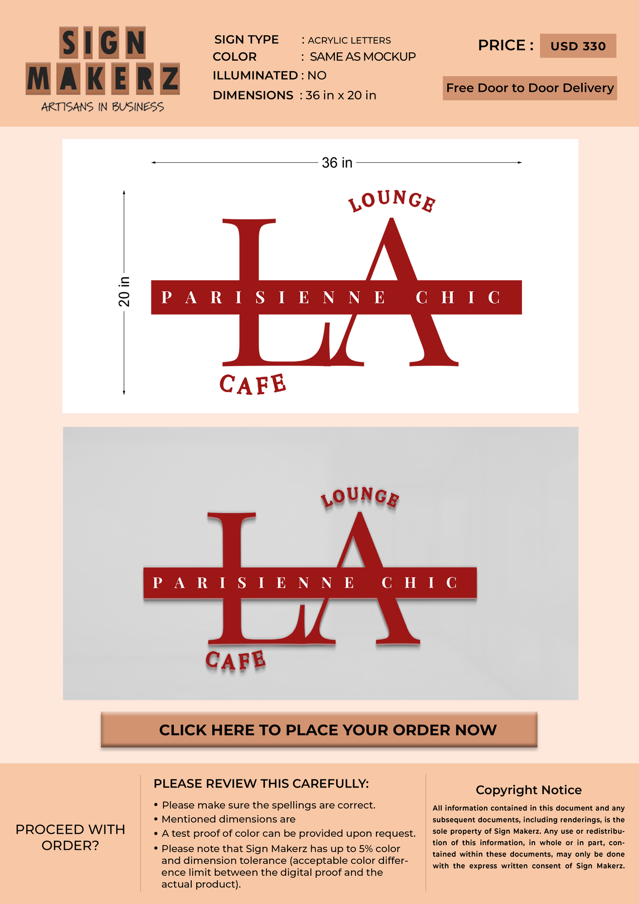 Crafted with premium material, this signage will elevate your business image, precisely mirroring your logo for a professional look.