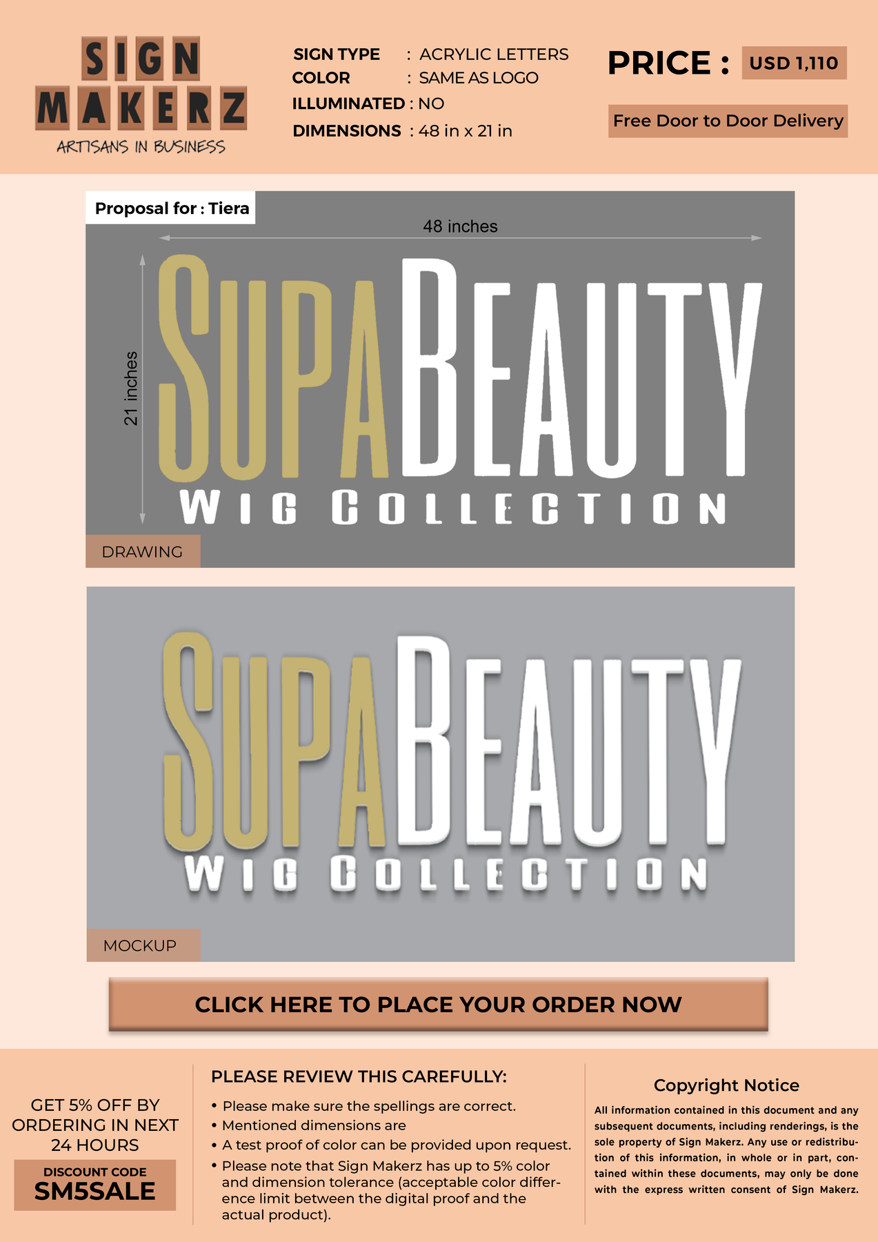Crafted with premium material, this signage will elevate your business image, precisely mirroring your logo for a professional look.