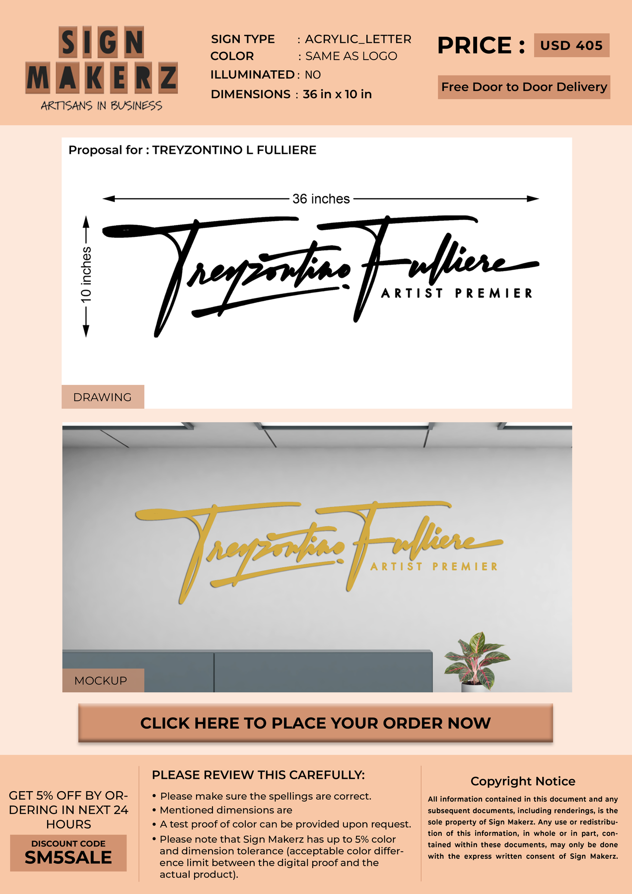 Acrylic Letters Sign For TREYZONTINO L FULLIERE