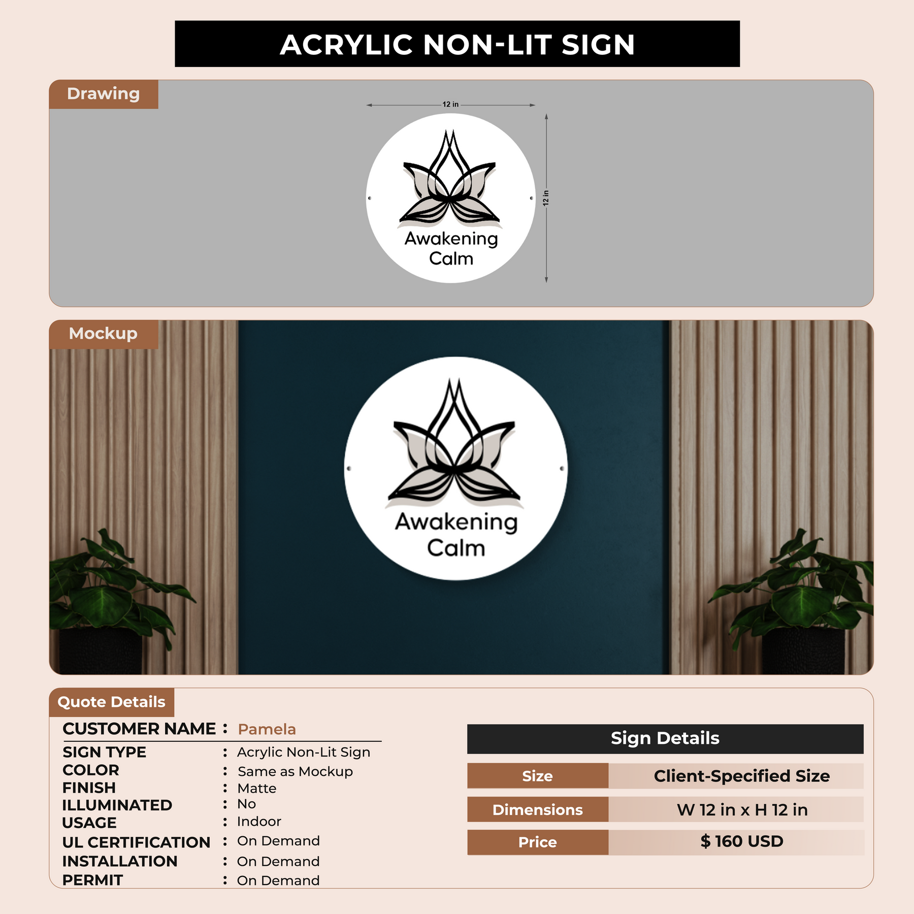 Acrylic Non-Lit Sign For Pamela