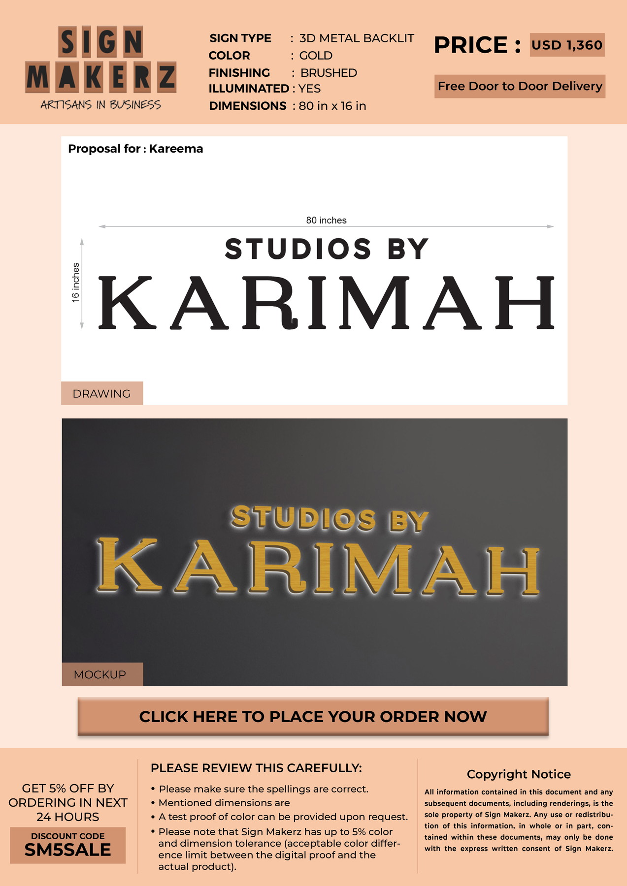 Crafted with premium material, this signage will elevate your business image, precisely mirroring your logo for a professional look.
