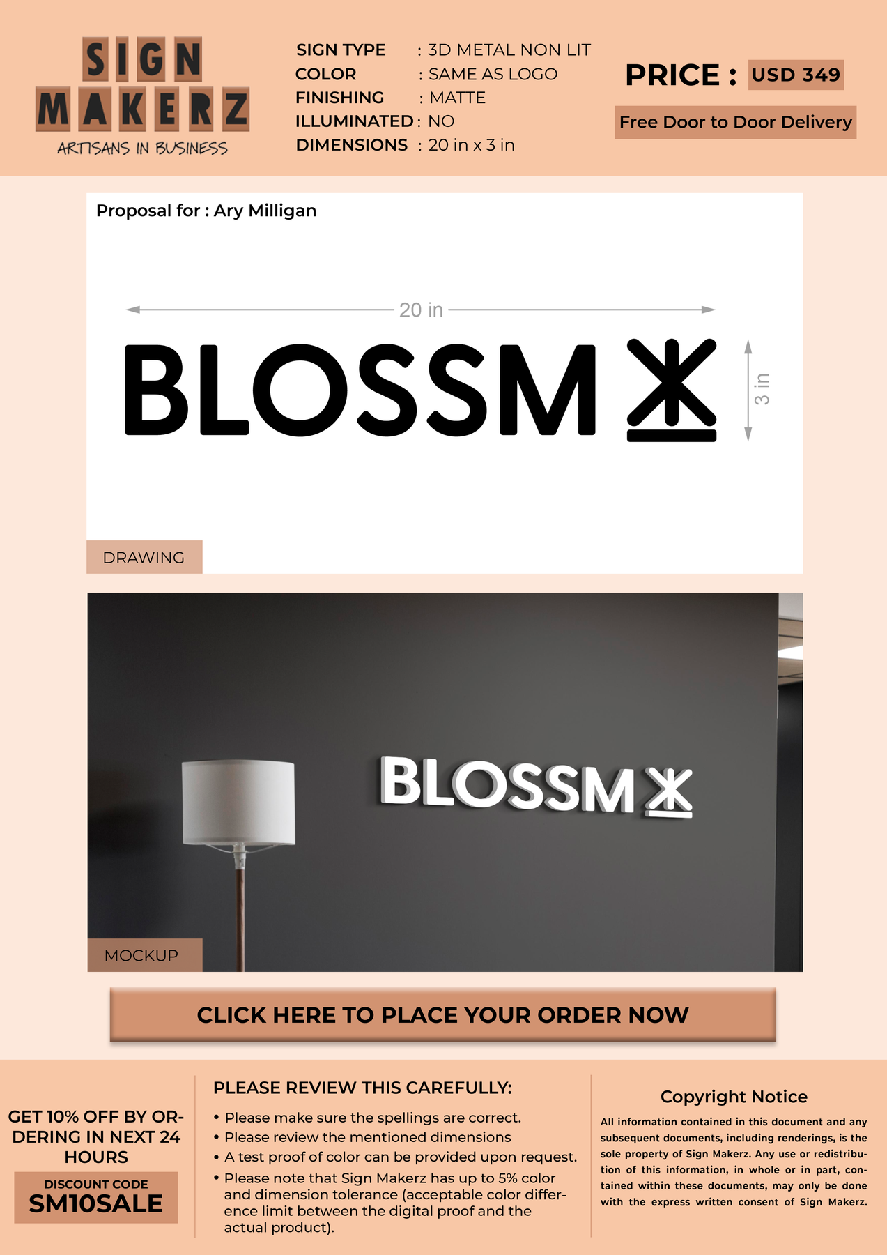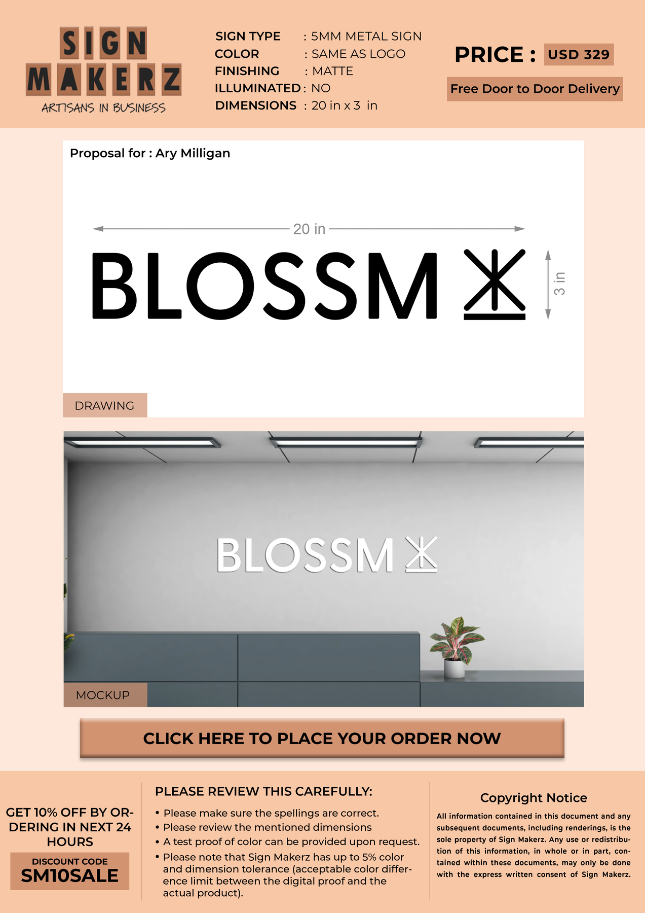 Crafted with premium material, this signage will elevate your business image, precisely mirroring your logo for a professional look.