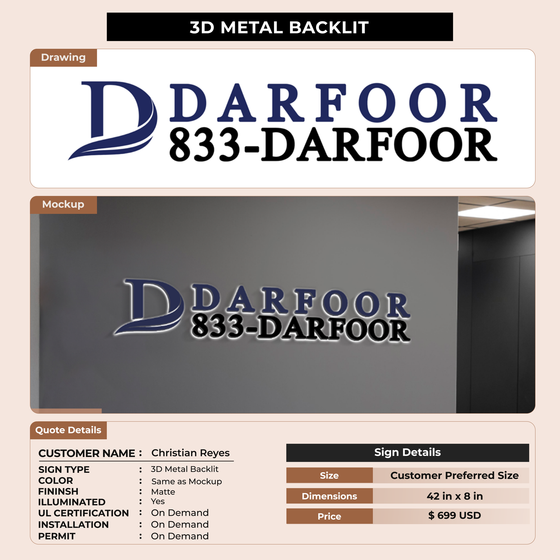 Crafted with premium material, this signage will elevate your business image, precisely mirroring your logo for a professional look.