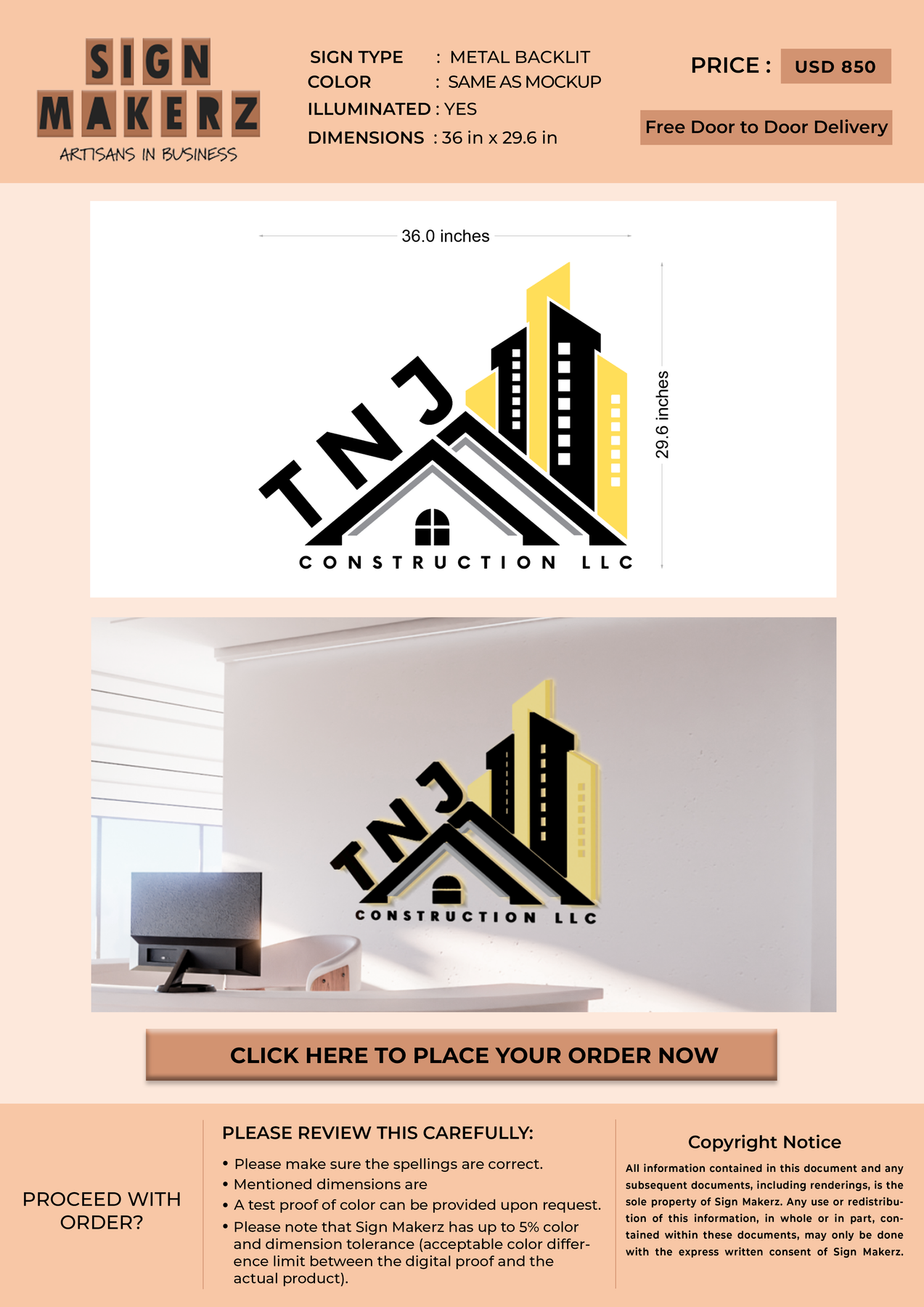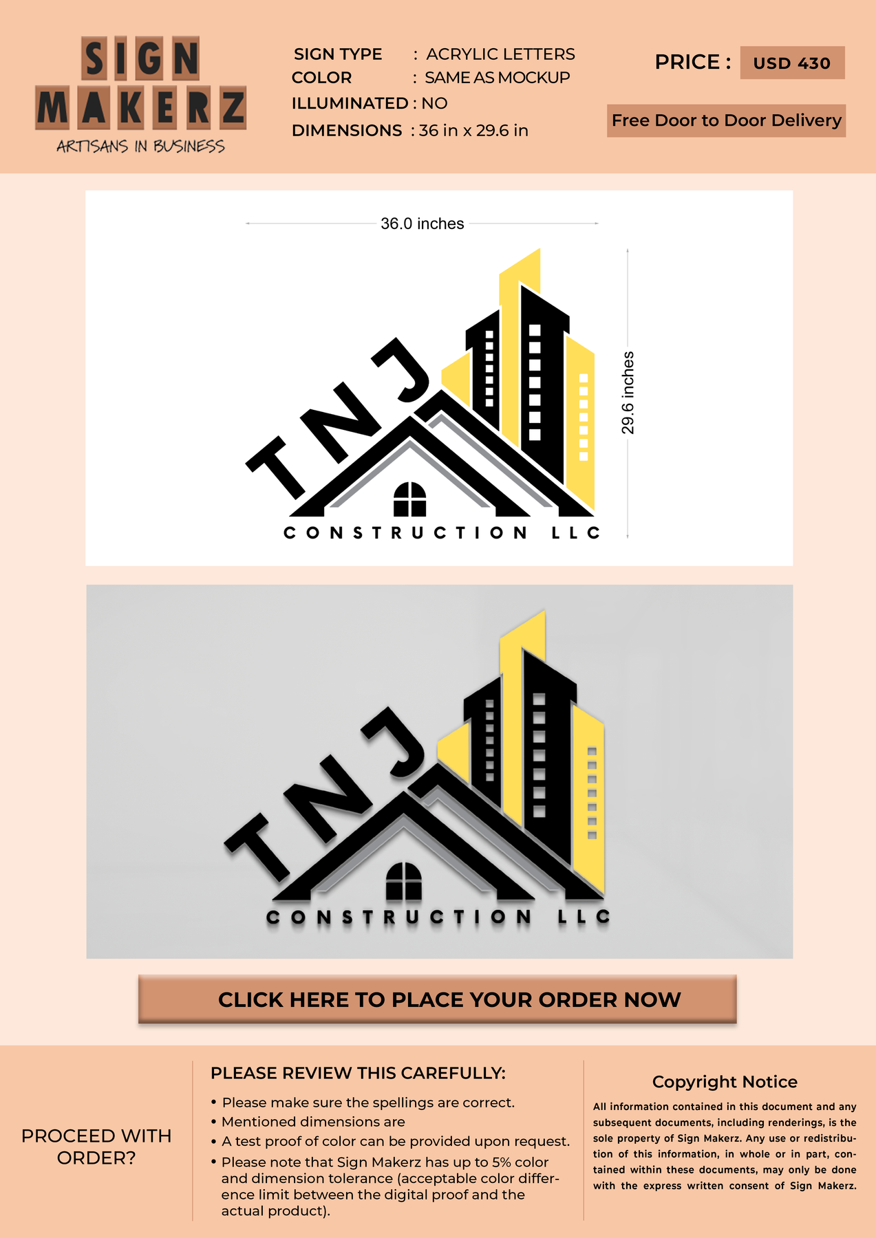 Crafted with premium material, this signage will elevate your business image, precisely mirroring your logo for a professional look.