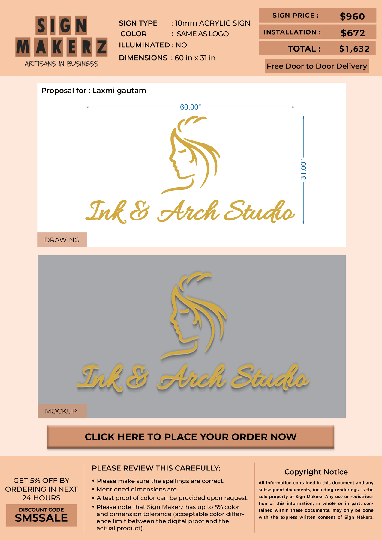 Crafted with premium material, this signage will elevate your business image, precisely mirroring your logo for a professional look.
