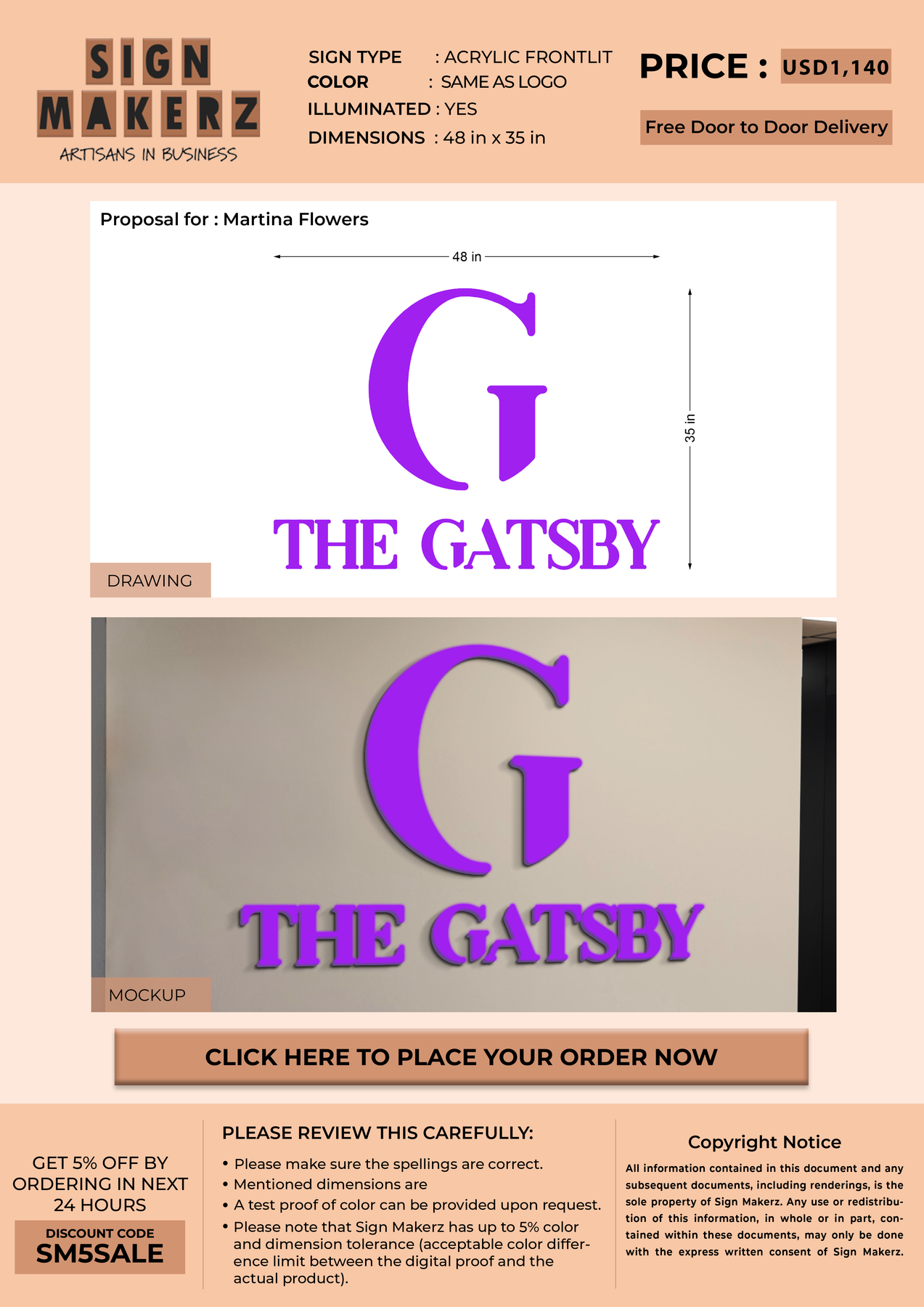 Crafted with premium material, this signage will elevate your business image, precisely mirroring your logo for a professional look.