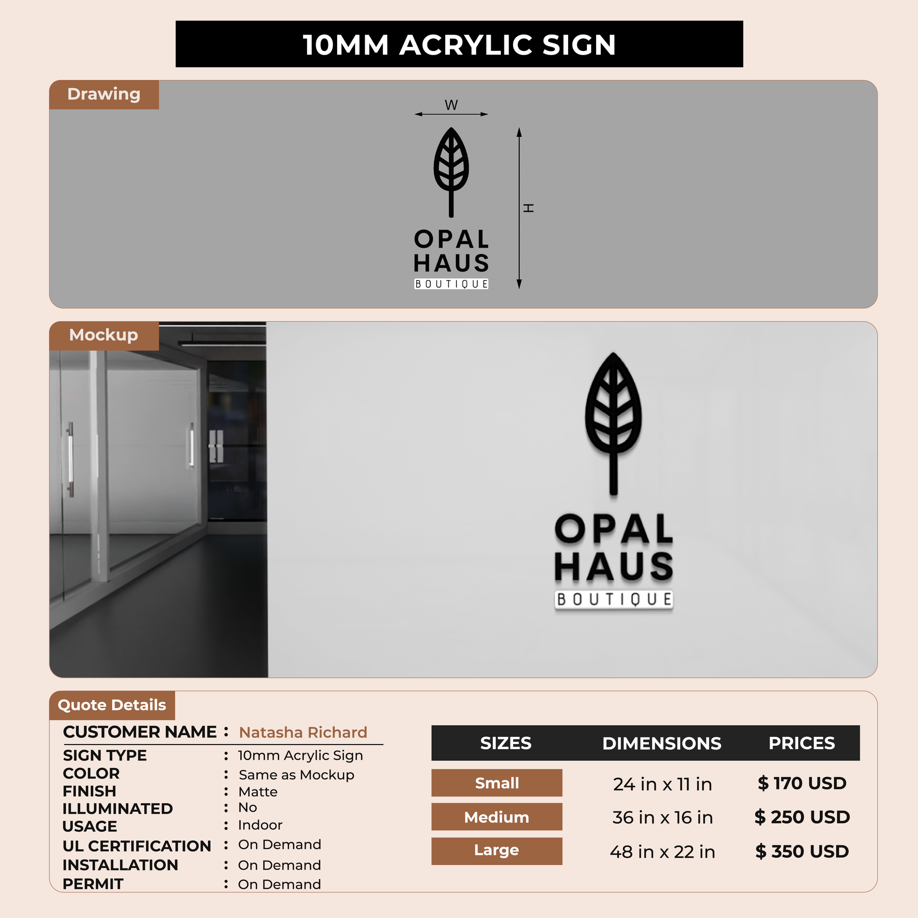 Crafted with premium material, this signage will elevate your business image, precisely mirroring your logo for a professional look.