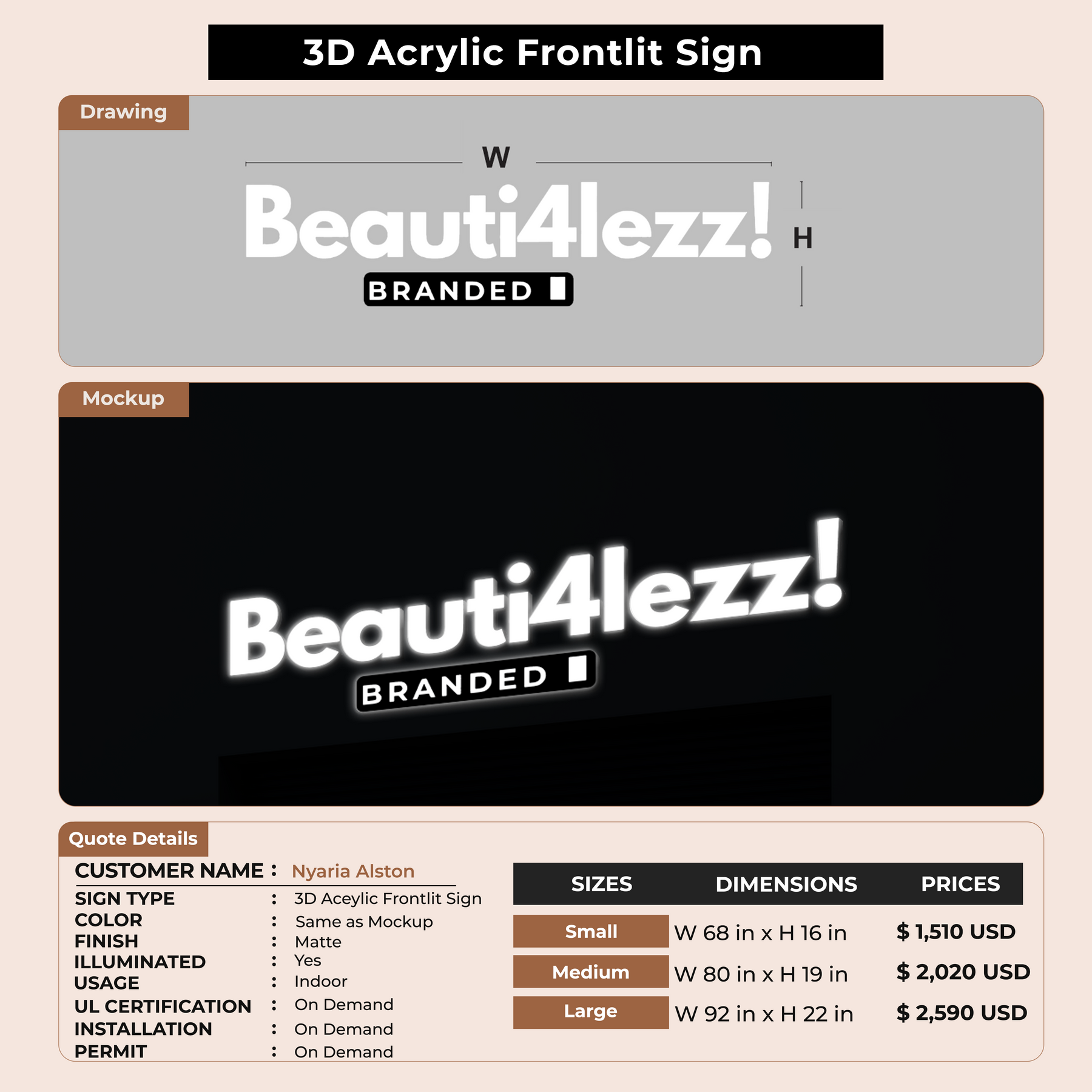 Enhance your business presence with our expertly crafted signage, made from top-quality material, to ensure longevity and durability. Fully customizable to reflect your unique brand identity, our signage offers a professional and polished appearance. Easy to install and low maintenance, it’s the perfect addition to any business setting. Trust us to deliver a product that not only meets but exceeds your expectations.