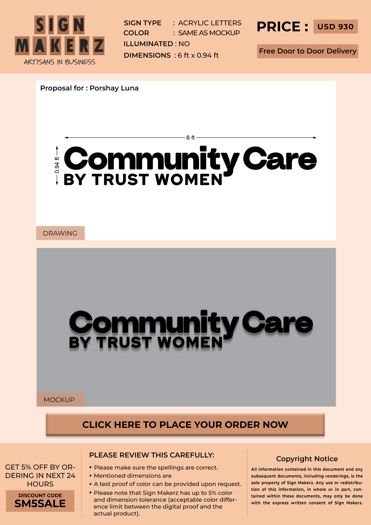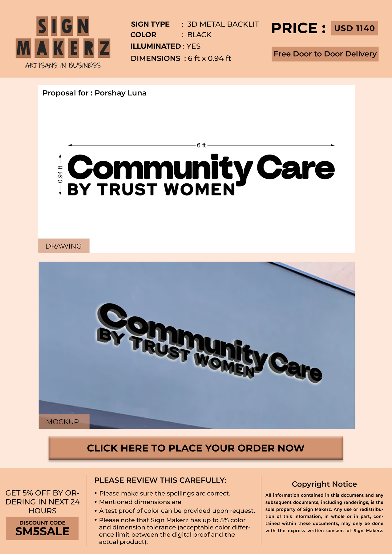 Crafted with premium material, this signage will elevate your business image, precisely mirroring your logo for a professional look.