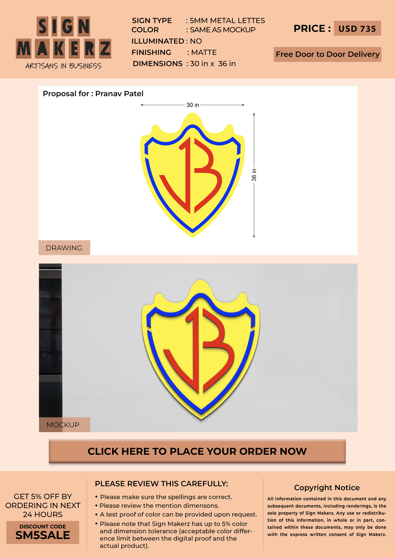 Crafted with premium material, this signage will elevate your business image, precisely mirroring your logo for a professional look.