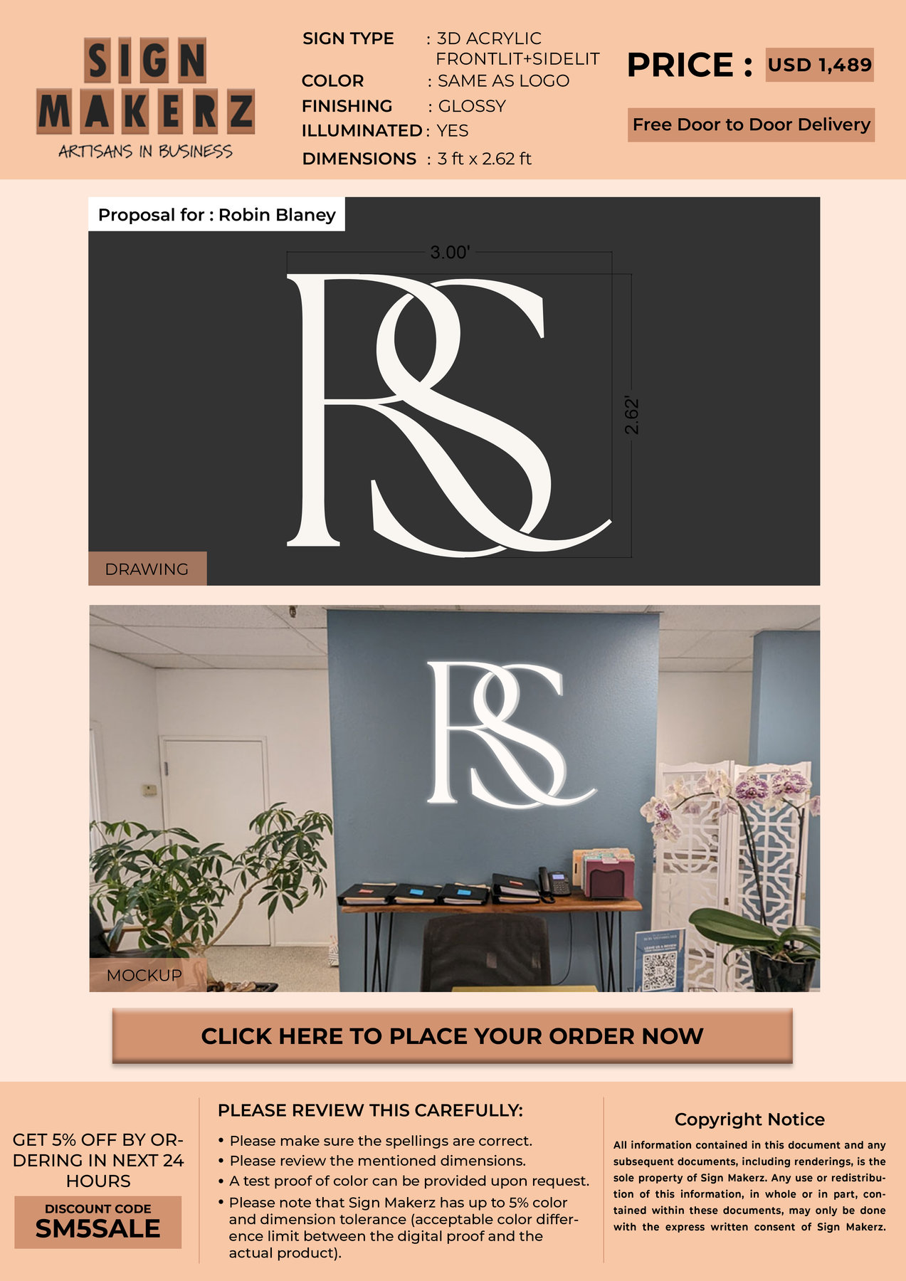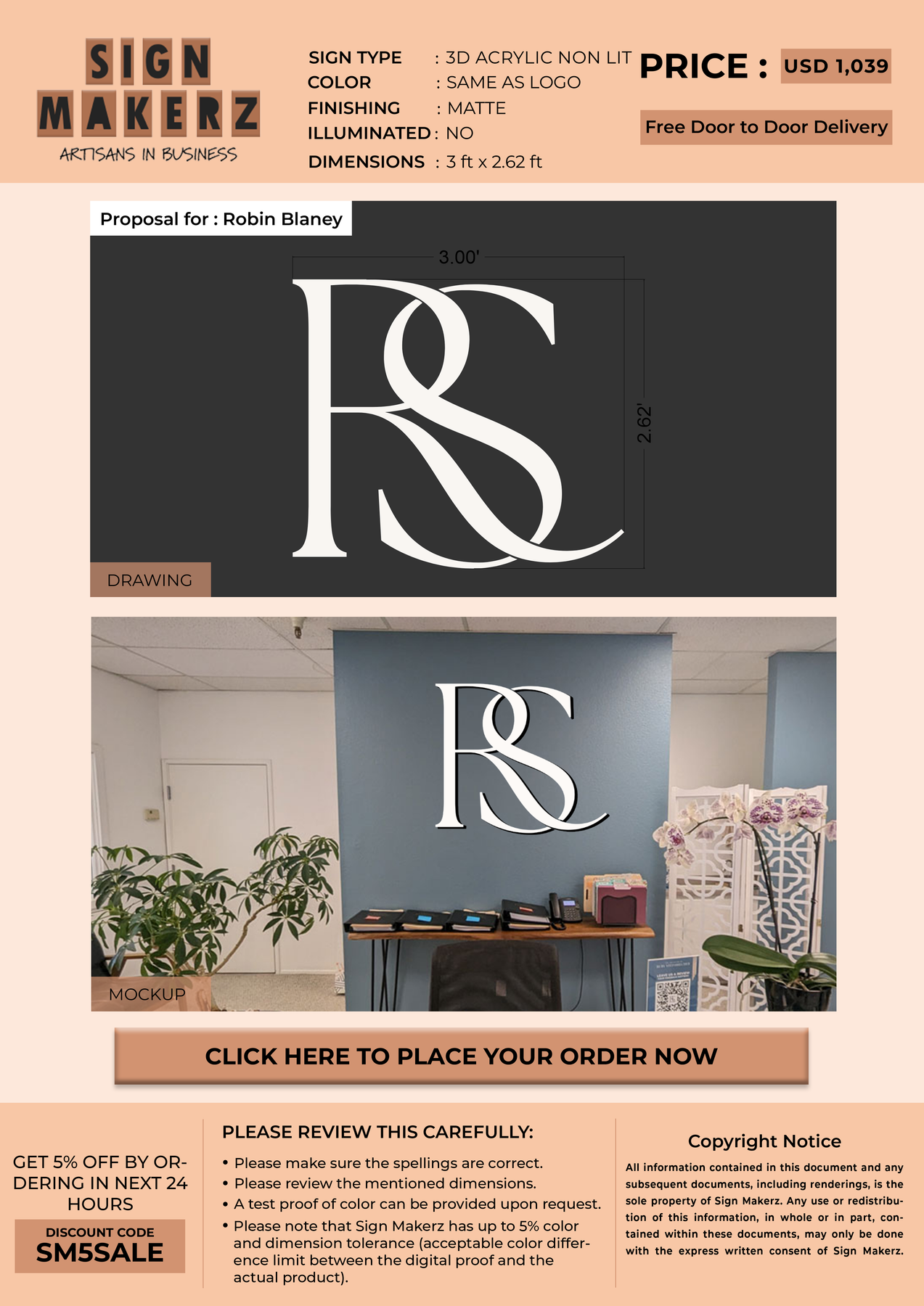 Crafted with premium material, this signage will elevate your business image, precisely mirroring your logo for a professional look.