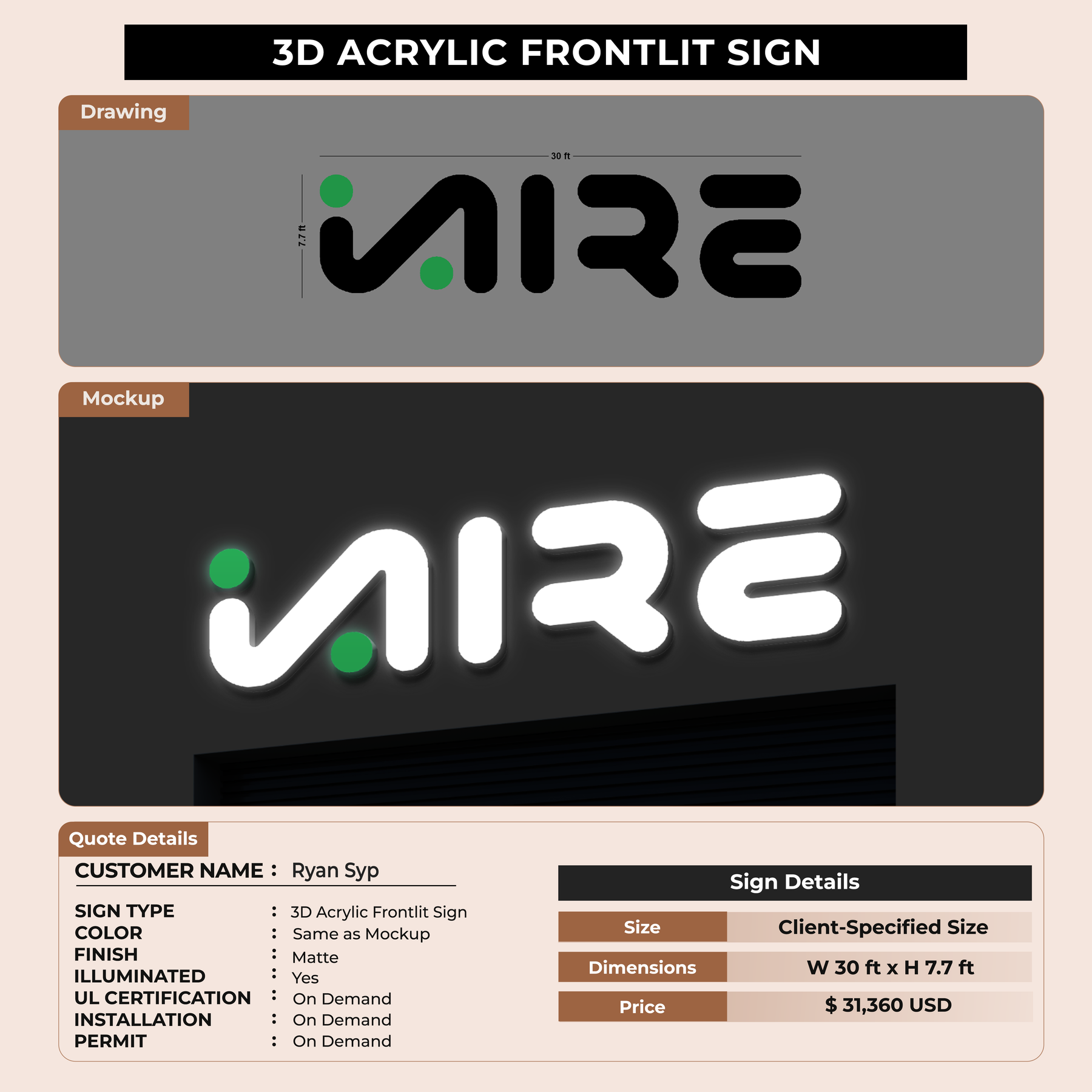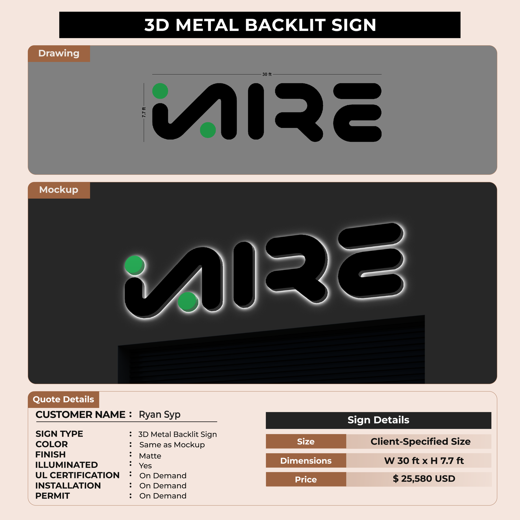 Crafted with premium material, this signage will elevate your business image, precisely mirroring your logo for a professional look.