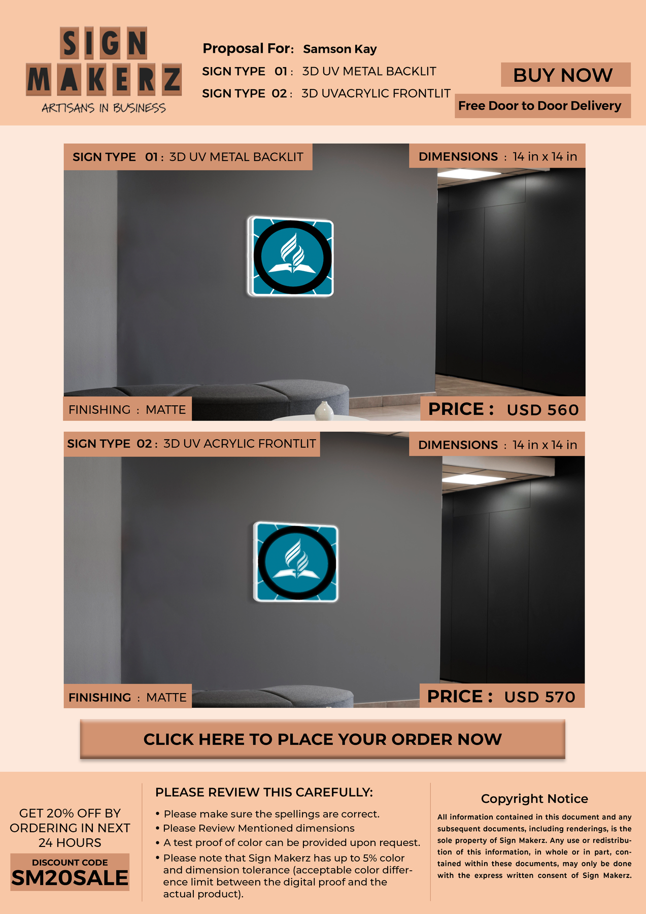 Crafted with premium material, this signage will elevate your business image, precisely mirroring your logo for a professional look.