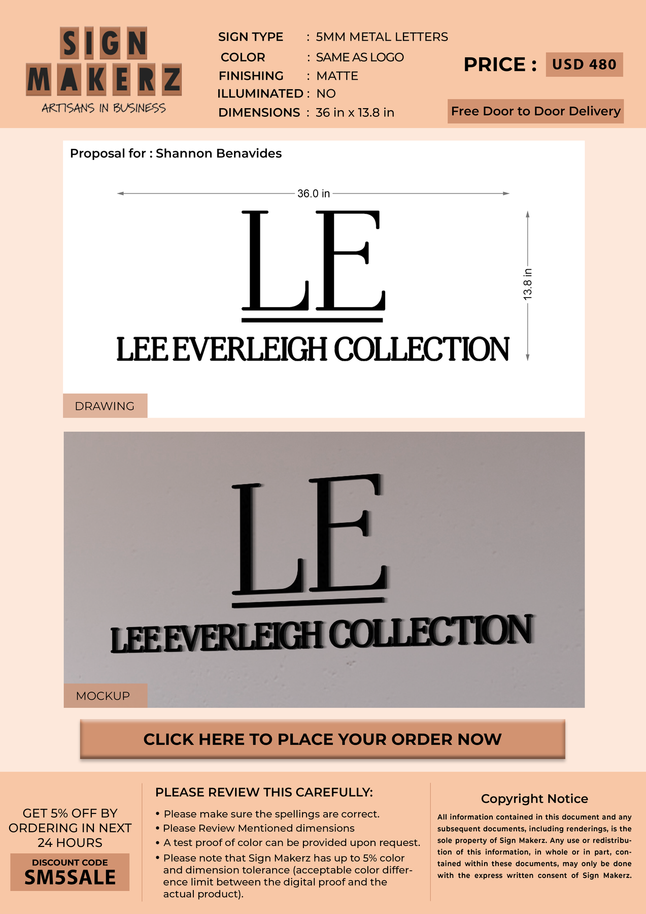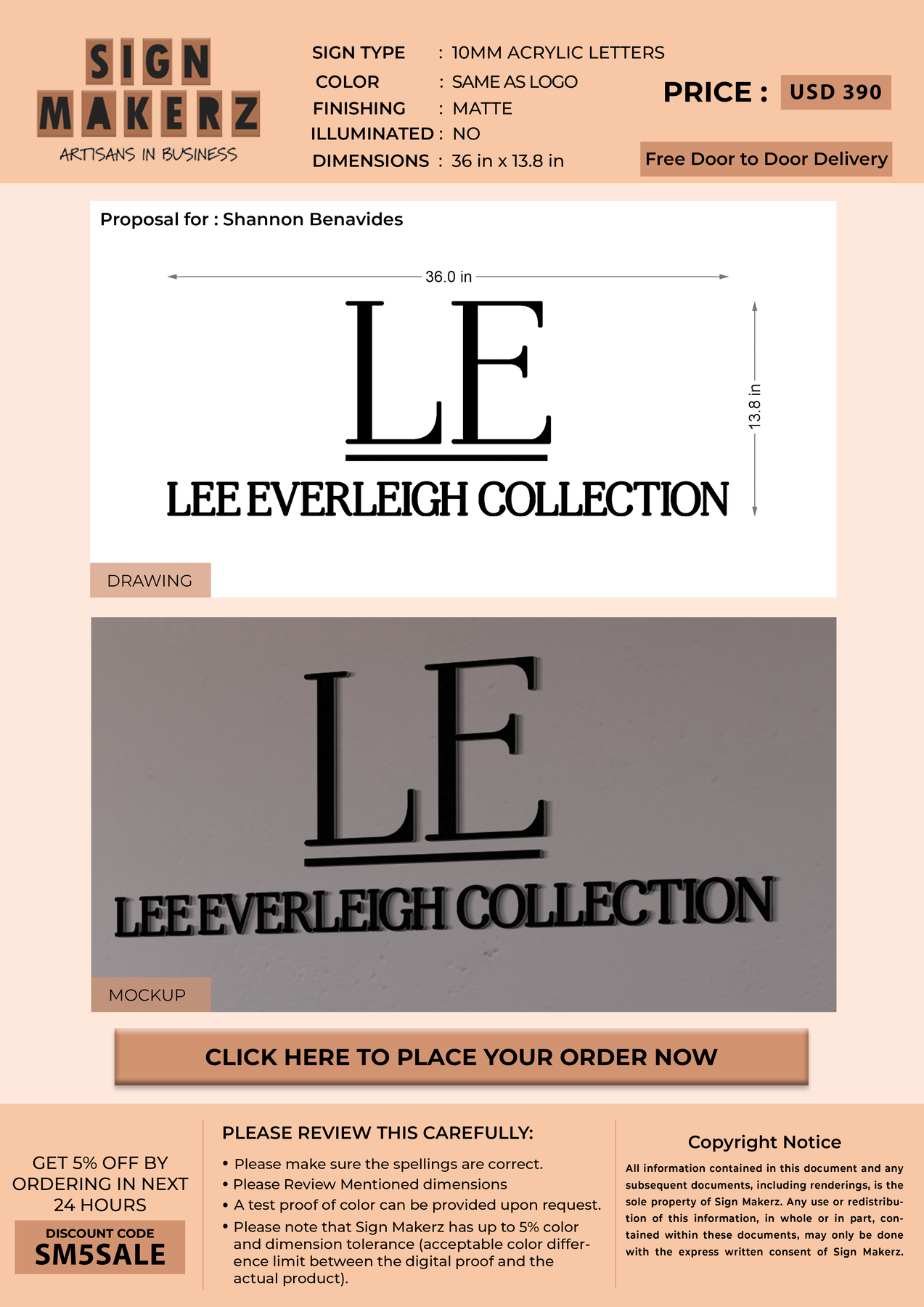 Crafted with premium material, this signage will elevate your business image, precisely mirroring your logo for a professional look.