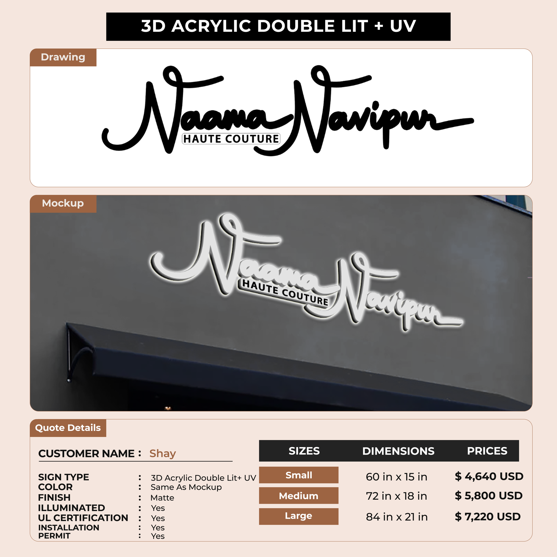 Crafted with premium material, this signage will elevate your business image, precisely mirroring your logo for a professional look.