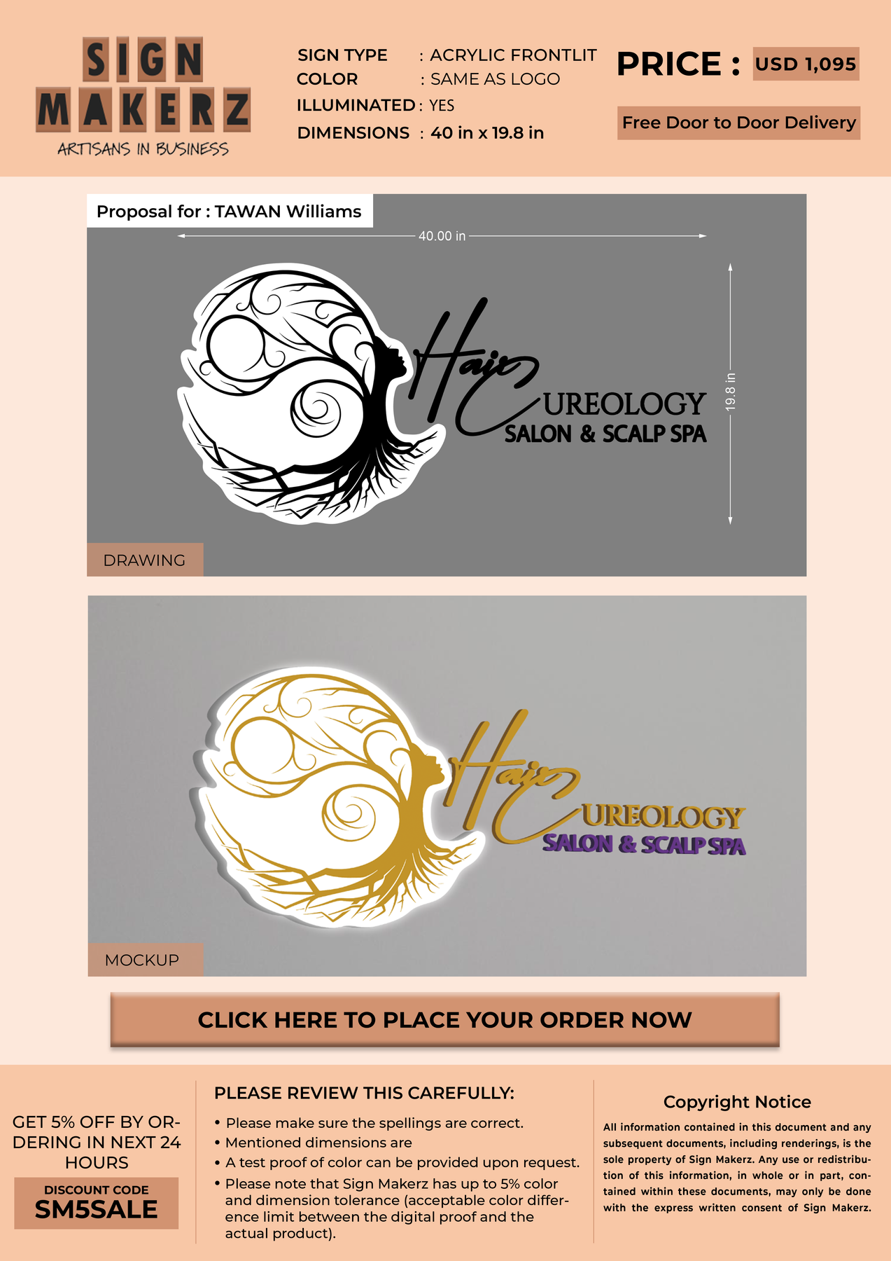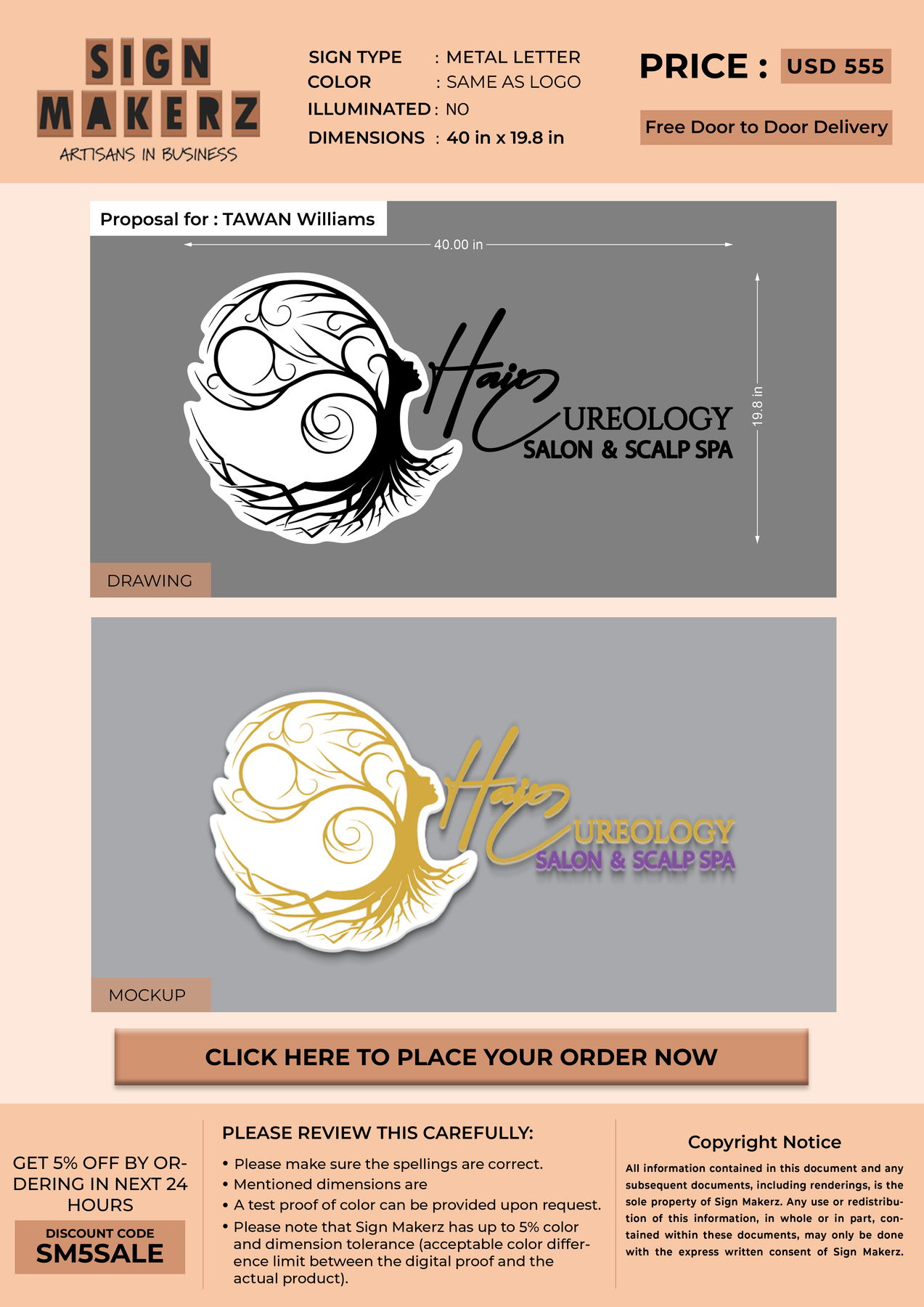 Crafted with premium material, this signage will elevate your business image, precisely mirroring your logo for a professional look.