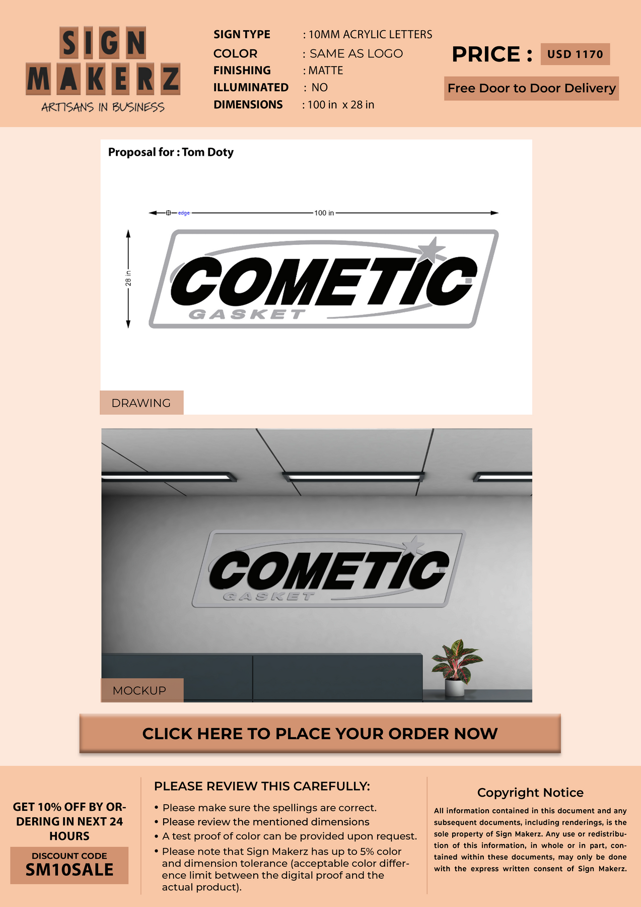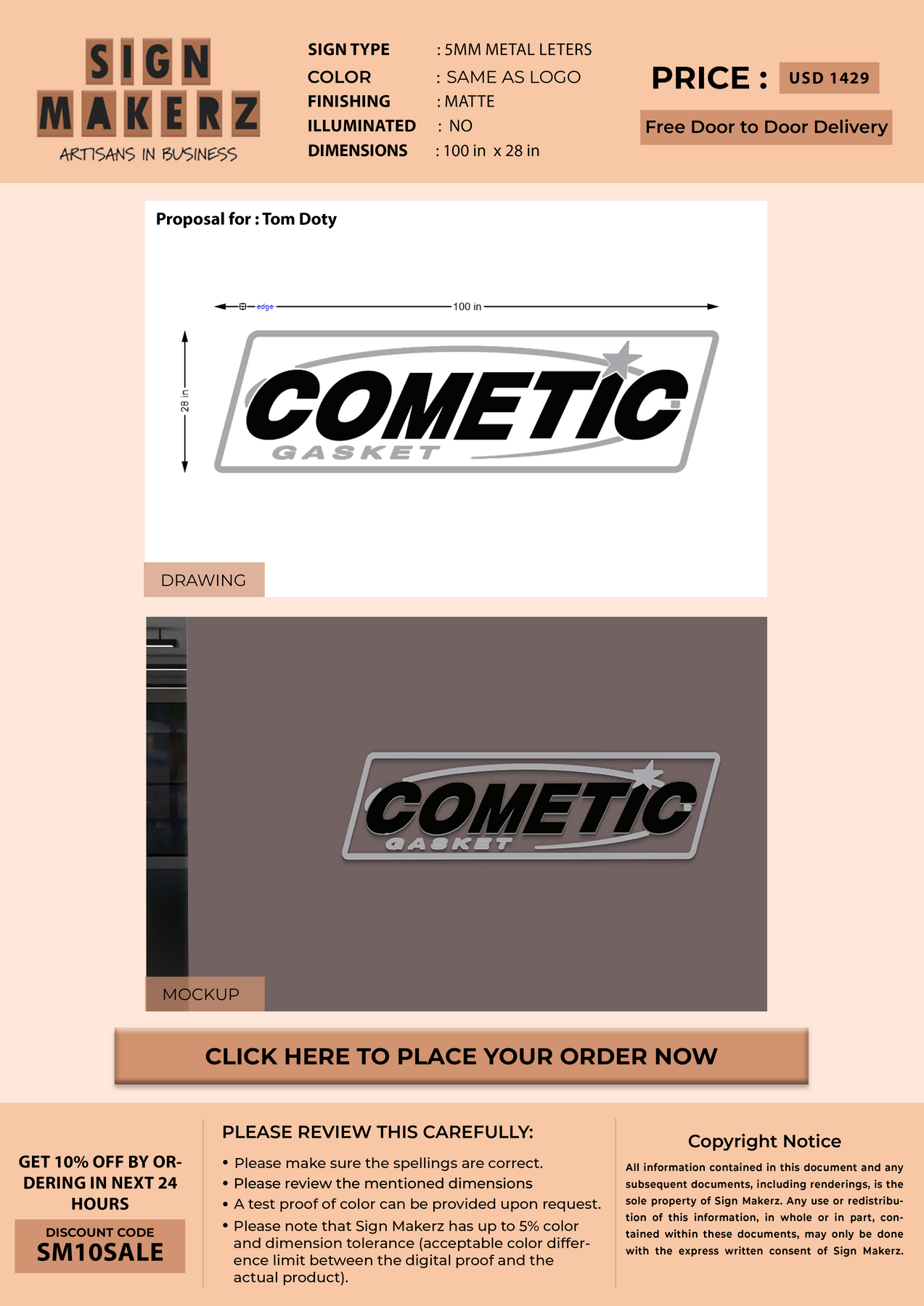 Crafted with premium material, this signage will elevate your business image, precisely mirroring your logo for a professional look.