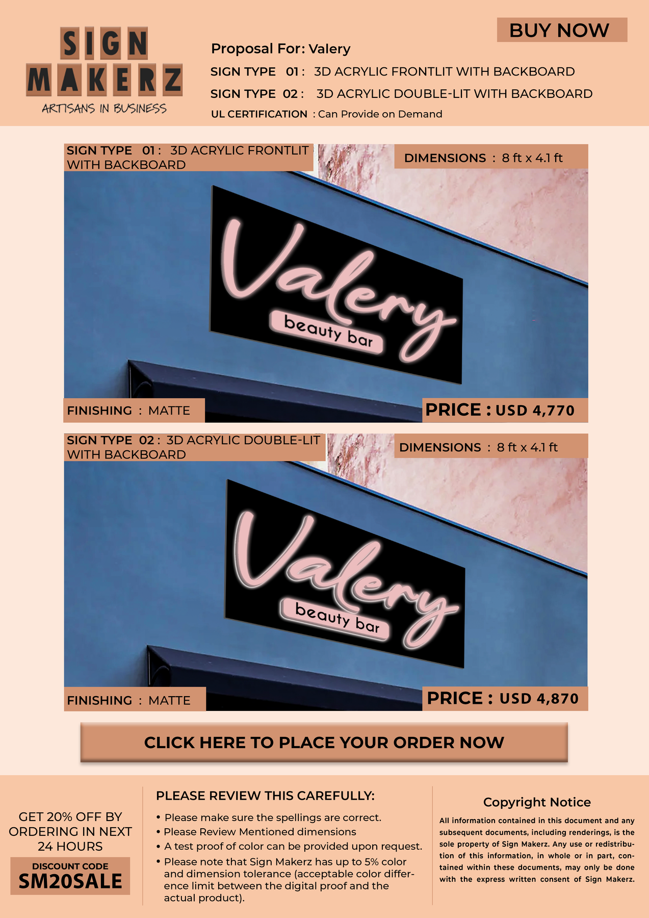 Business signage for Valery