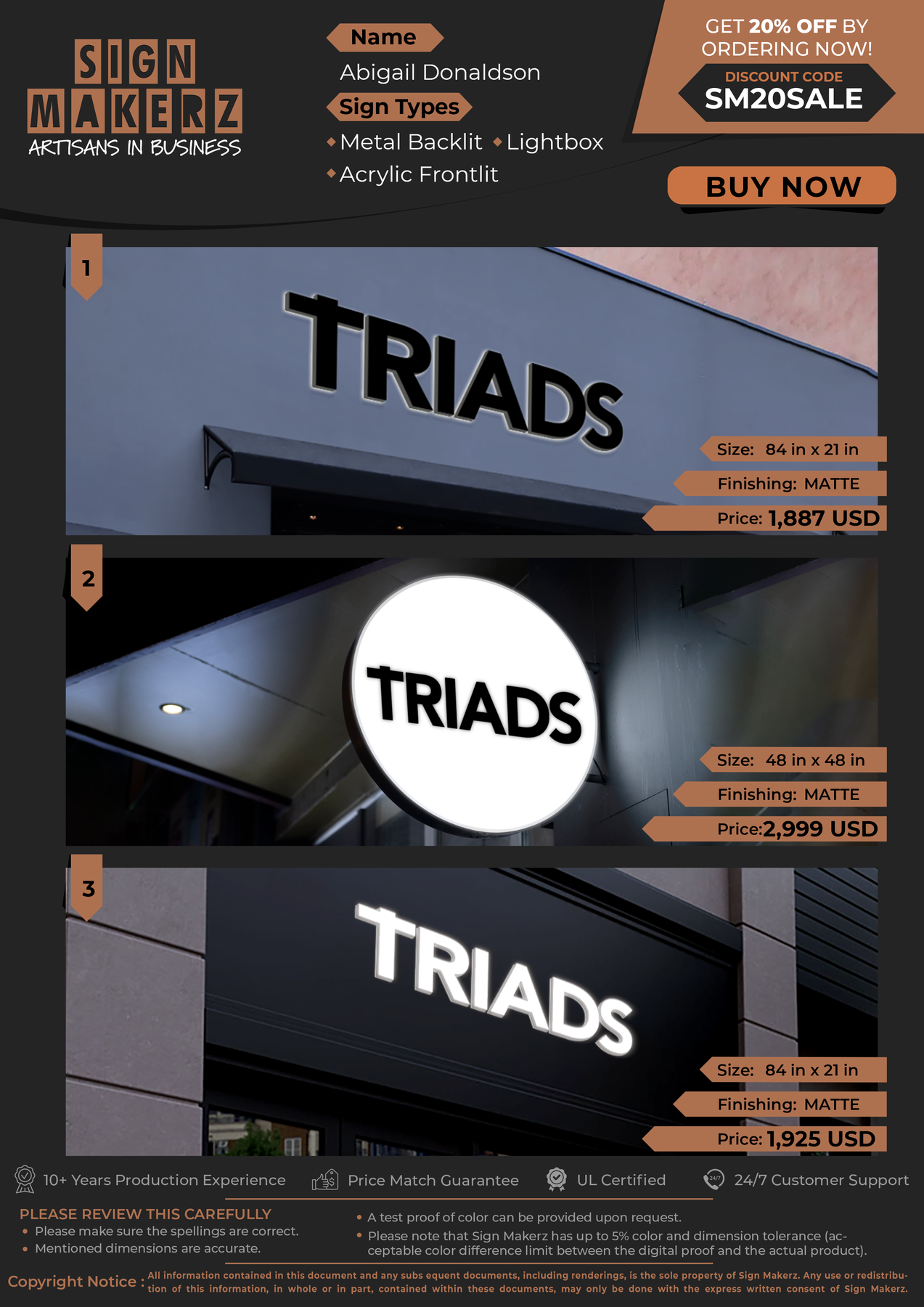 Enhance your business presence with our expertly crafted signage, made from top-quality material, to ensure longevity and durability. Fully customizable to reflect your unique brand identity, our signage offers a professional and polished appearance. Easy to install and low maintenance, it’s the perfect addition to any business setting. Trust us to deliver a product that not only meets but exceeds your expectations.