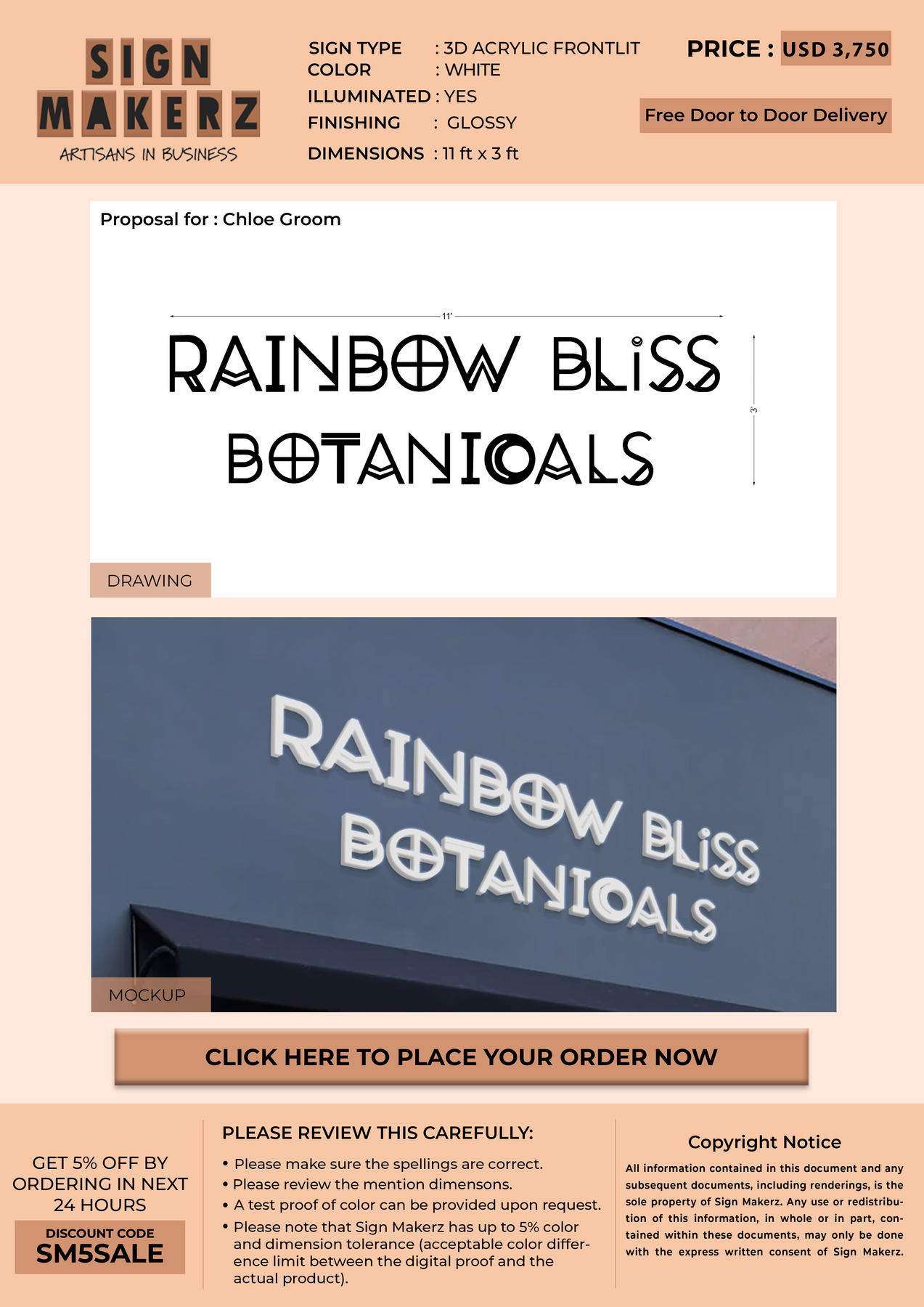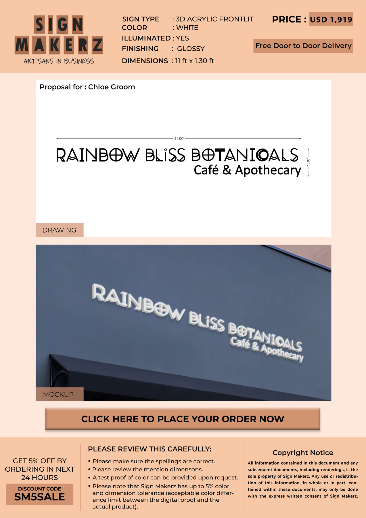 Crafted with premium material, this signage will elevate your business image, precisely mirroring your logo for a professional look.