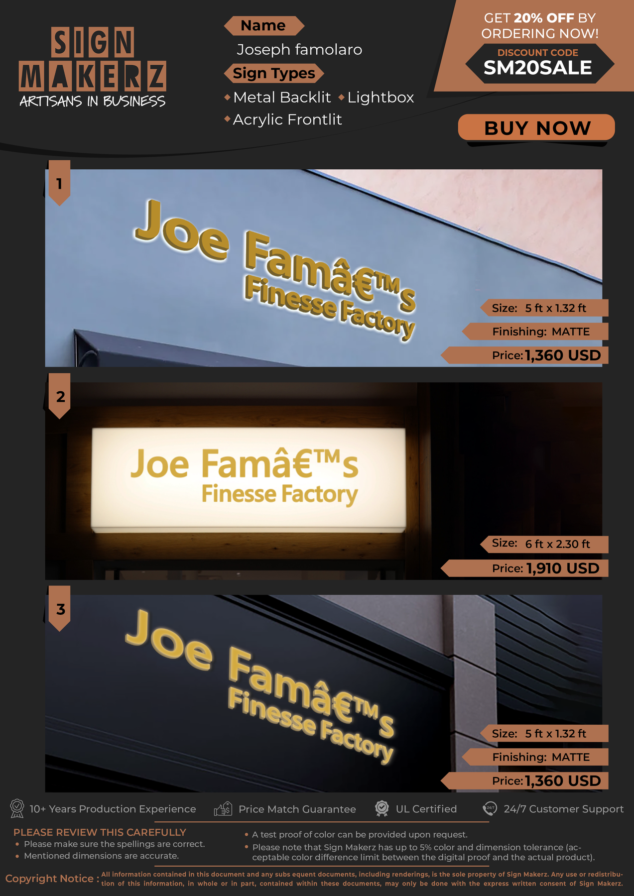 Enhance your business presence with our expertly crafted signage, made from top-quality material, to ensure longevity and durability. Fully customizable to reflect your unique brand identity, our signage offers a professional and polished appearance. Easy to install and low maintenance, it’s the perfect addition to any business setting. Trust us to deliver a product that not only meets but exceeds your expectations.