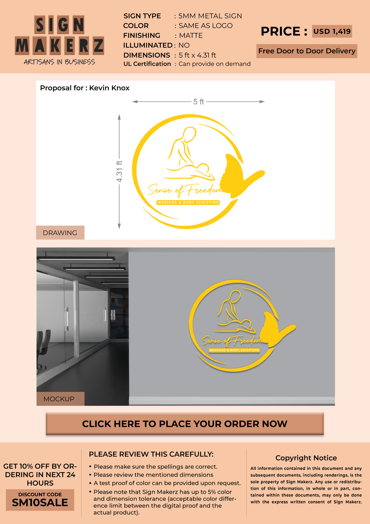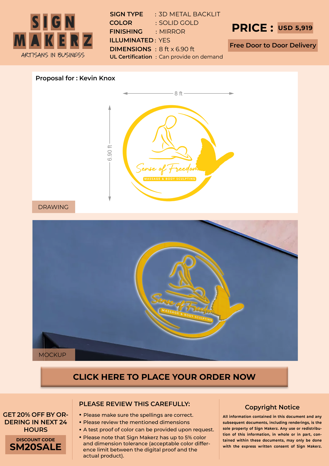 Crafted with premium material, this signage will elevate your business image, precisely mirroring your logo for a professional look.