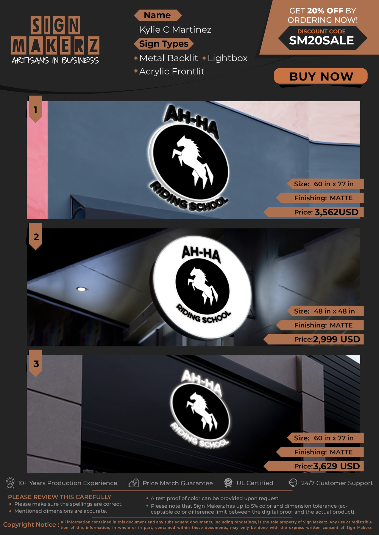 Crafted with premium material, this signage will elevate your business image, precisely mirroring your logo for a professional look.