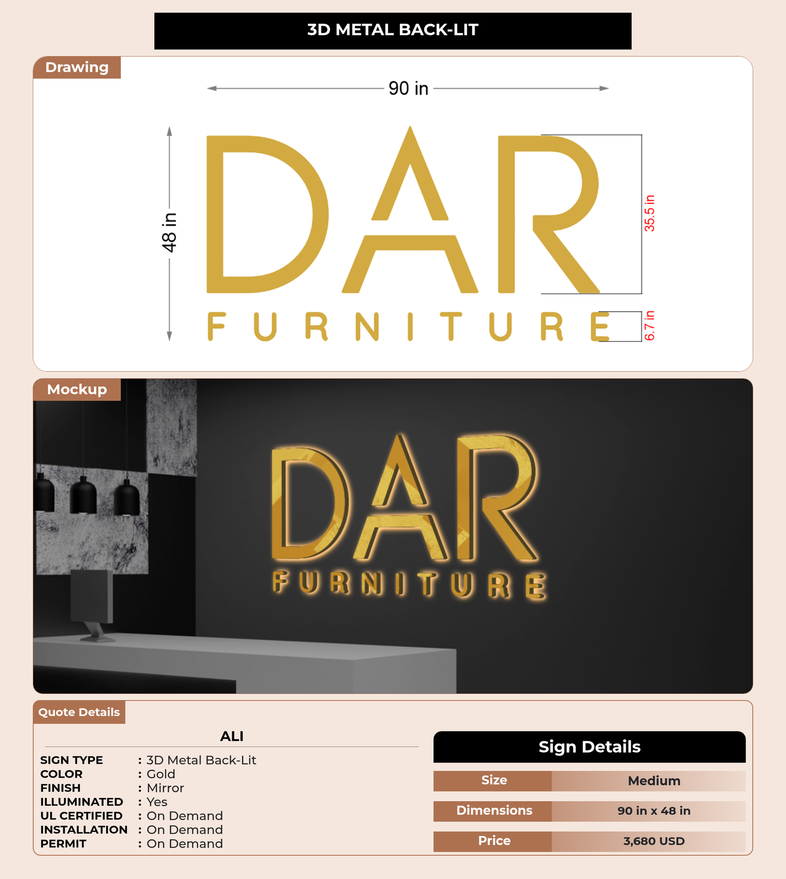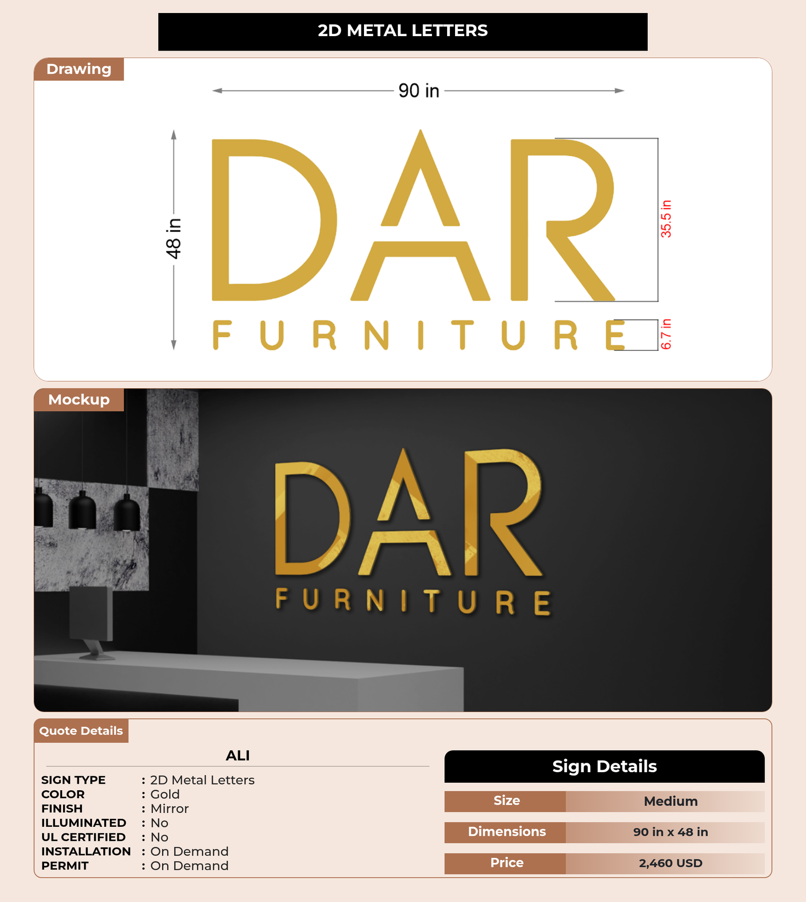 Crafted with premium material, this signage will elevate your business image, precisely mirroring your logo for a professional look.