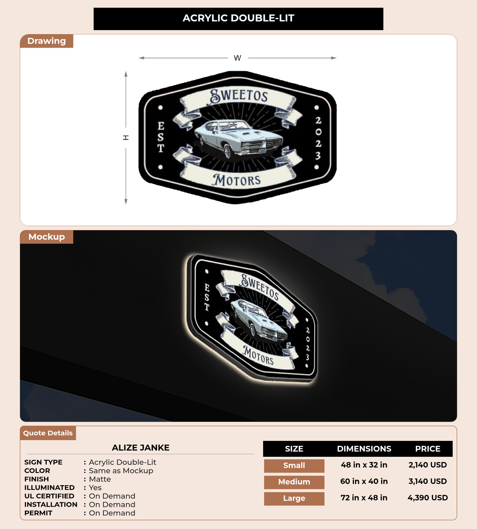 Enhance your business presence with our expertly crafted signage, made from top-quality material, to ensure longevity and durability. Fully customizable to reflect your unique brand identity, our signage offers a professional and polished appearance. Easy to install and low maintenance, it’s the perfect addition to any business setting. Trust us to deliver a product that not only meets but exceeds your expectations.