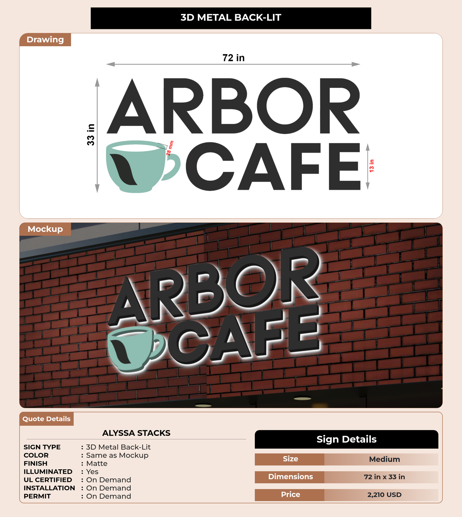Crafted with premium material, this signage will elevate your business image, precisely mirroring your logo for a professional look.