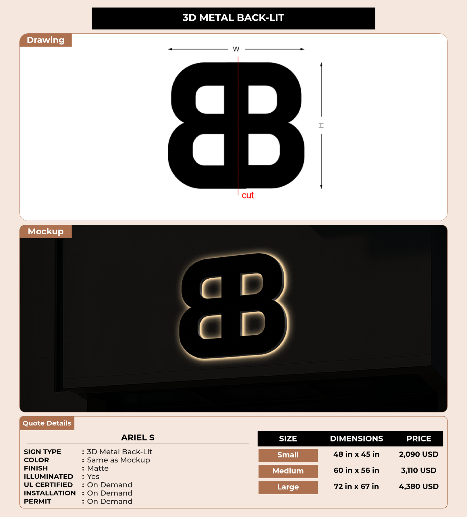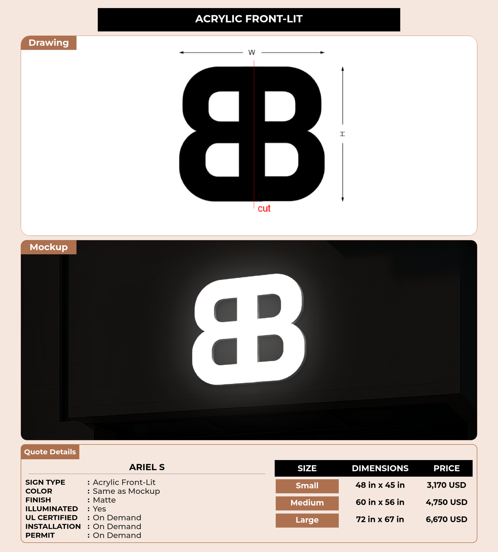 Crafted with premium material, this signage will elevate your business image, precisely mirroring your logo for a professional look.