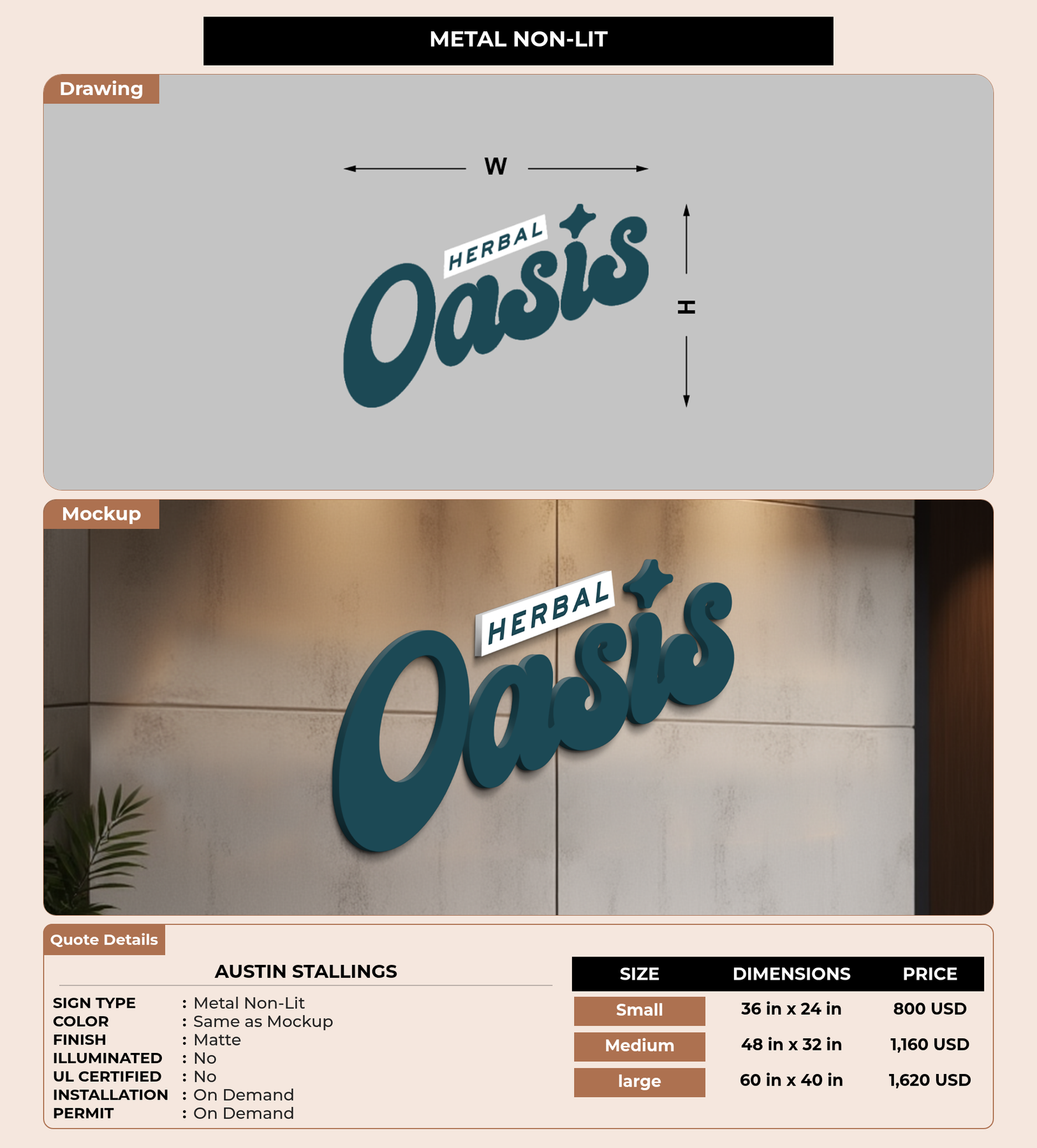 Enhance your business presence with our expertly crafted signage, made from top-quality material, to ensure longevity and durability. Fully customizable to reflect your unique brand identity, our signage offers a professional and polished appearance. Easy to install and low maintenance, it’s the perfect addition to any business setting. Trust us to deliver a product that not only meets but exceeds your expectations.