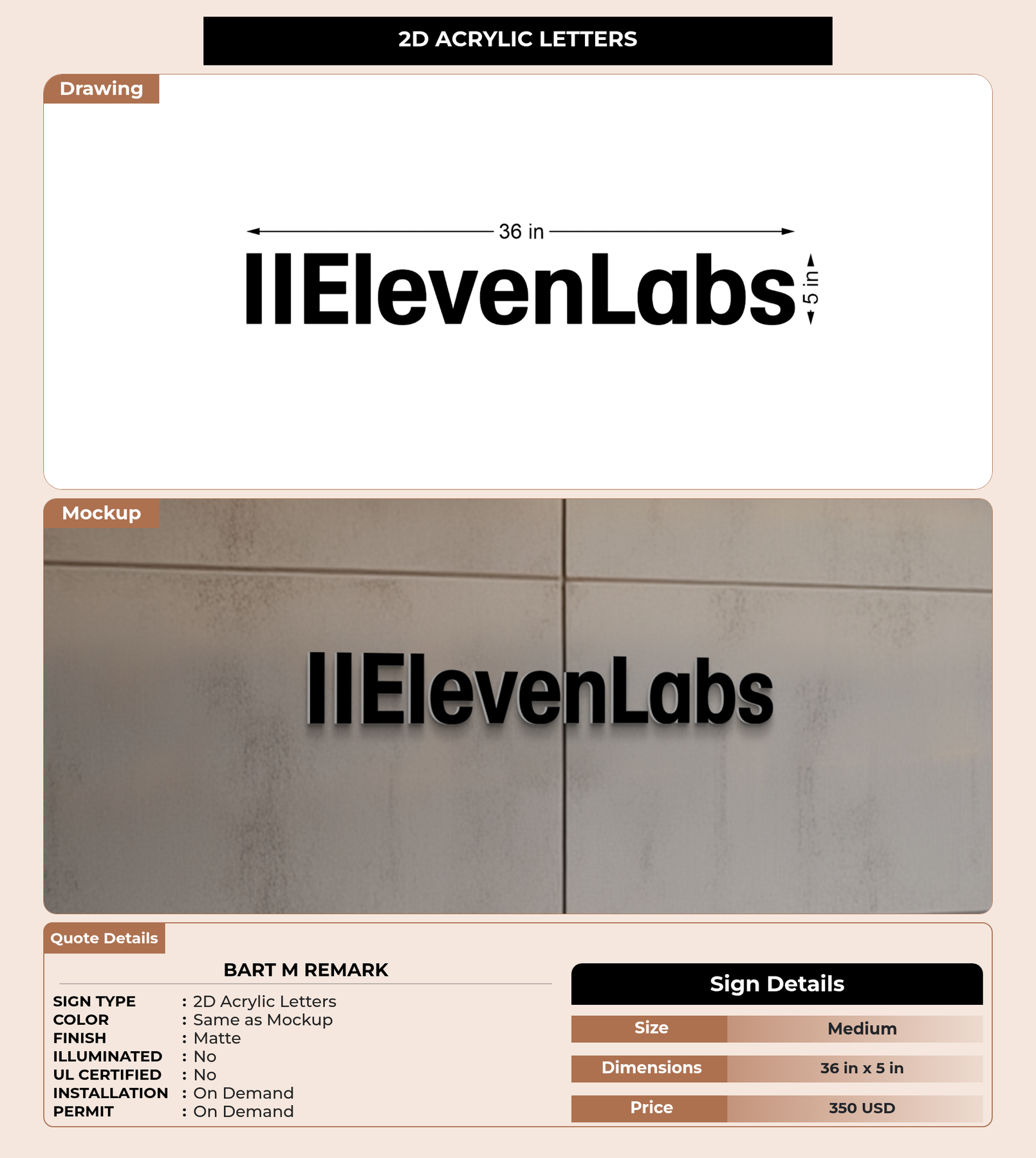 Crafted with premium material, this signage will elevate your business image, precisely mirroring your logo for a professional look.
