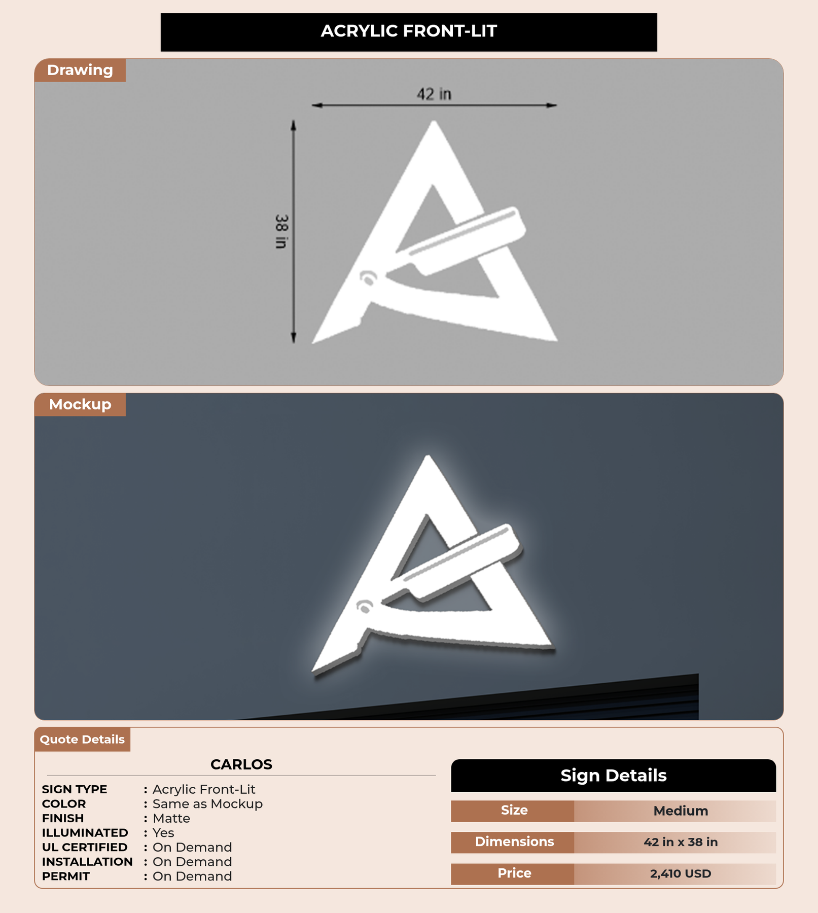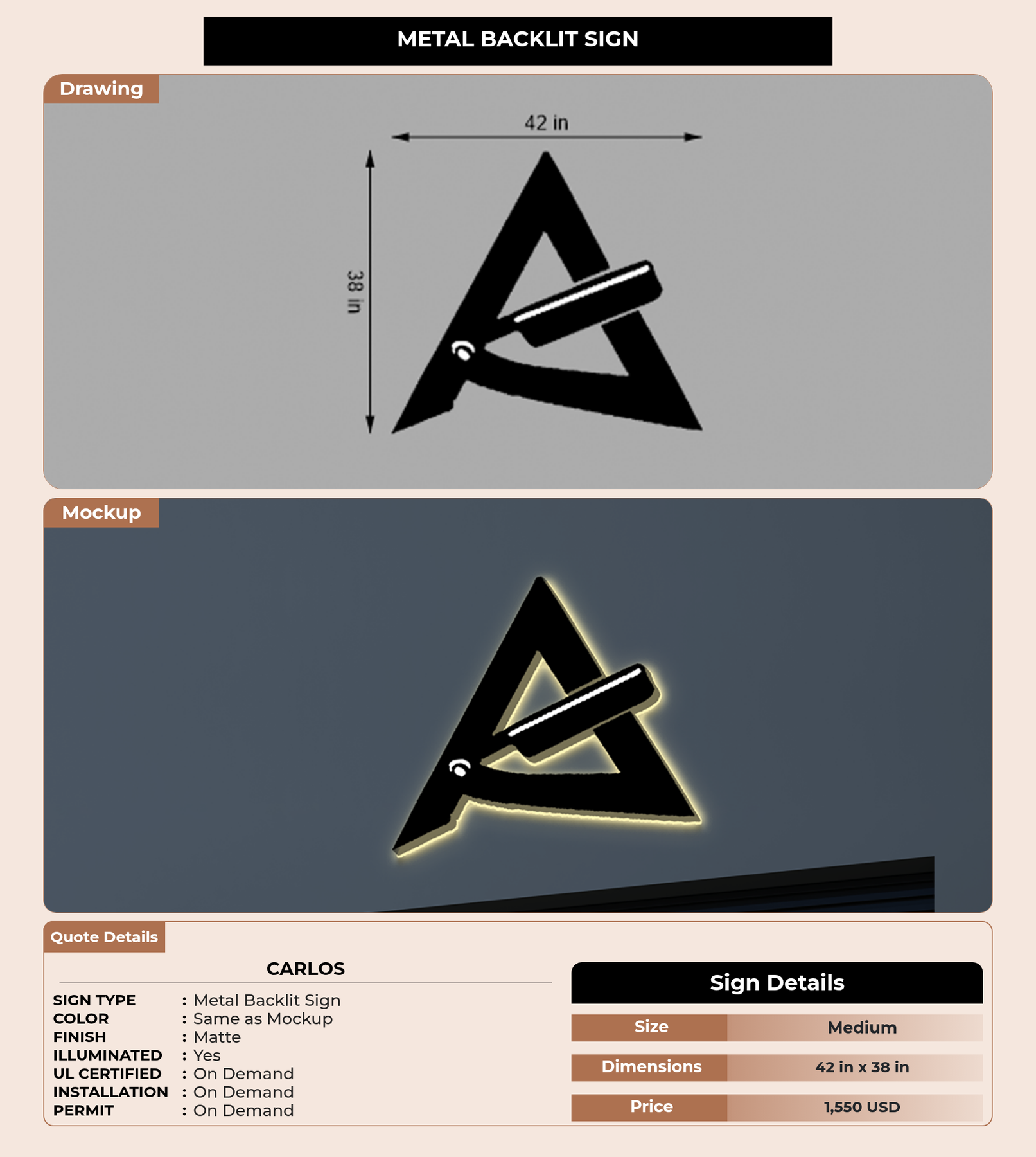 Crafted with premium material, this signage will elevate your business image, precisely mirroring your logo for a professional look.