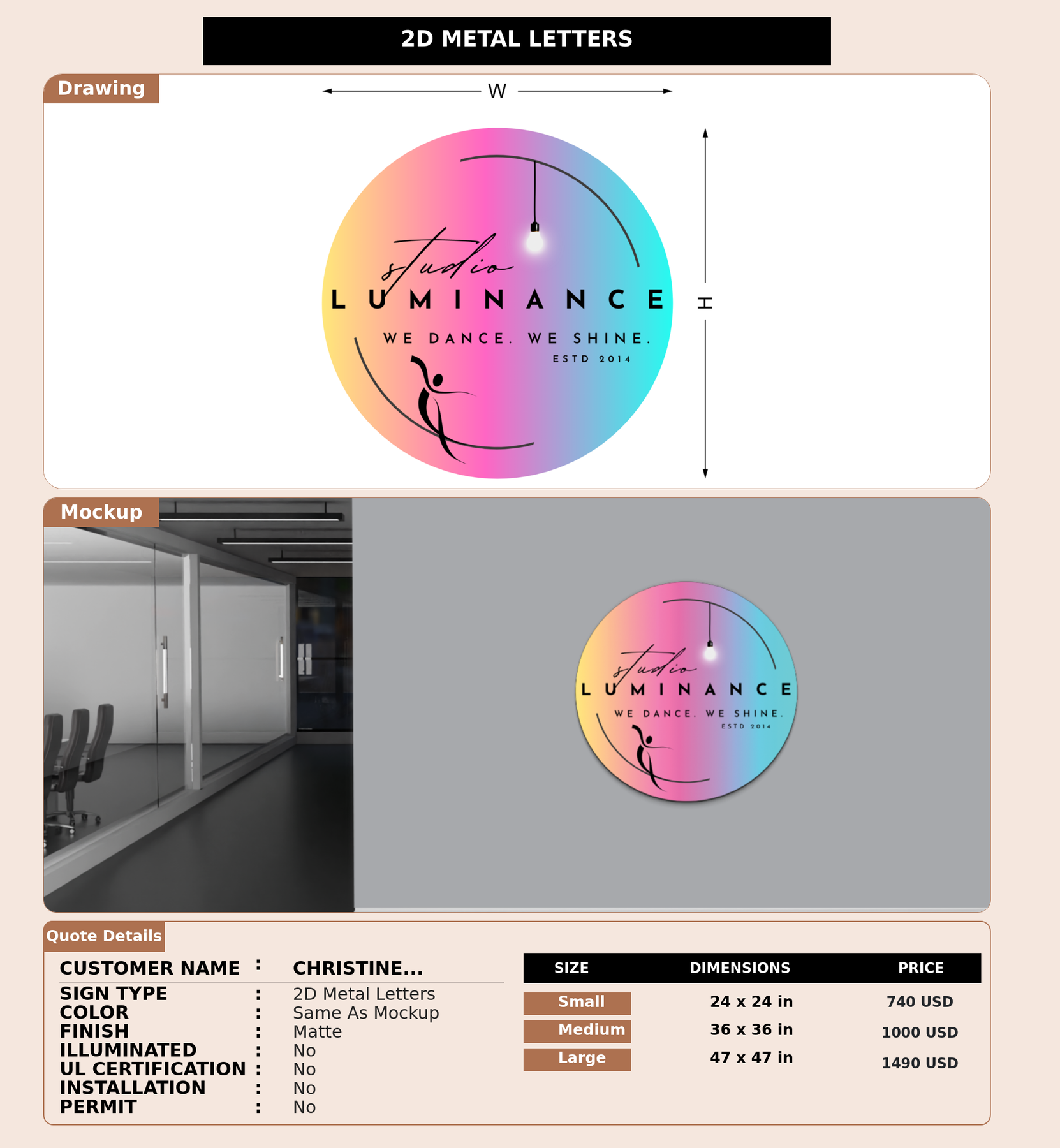 Crafted with premium material, this signage will elevate your business image, precisely mirroring your logo for a professional look.