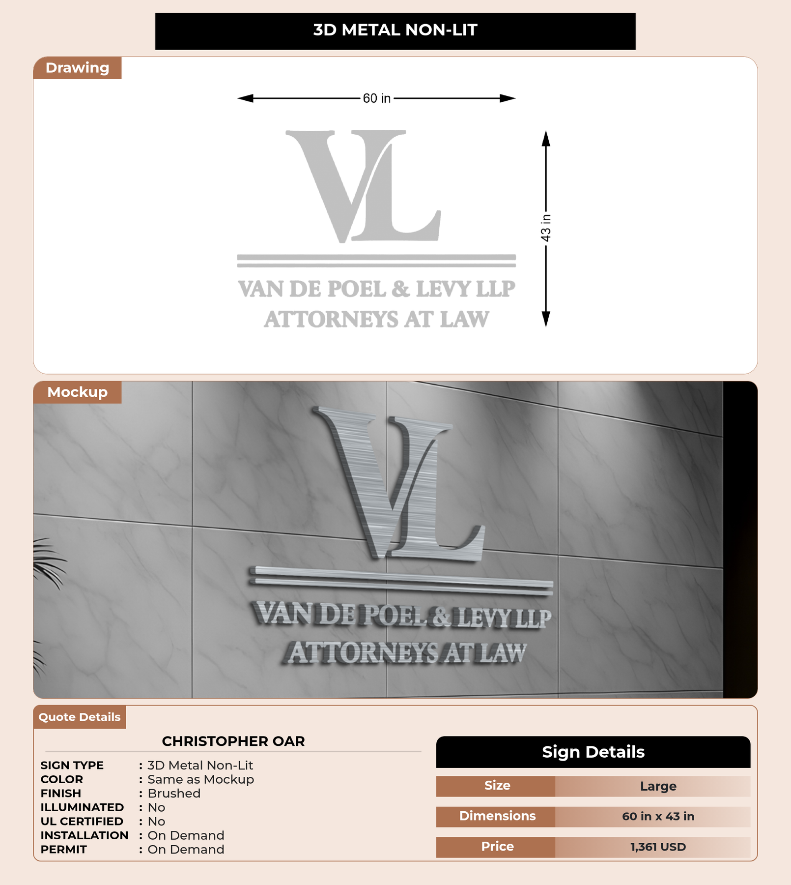 Installation services are available for an additional fee, depending on your location and the complexity of the signage.