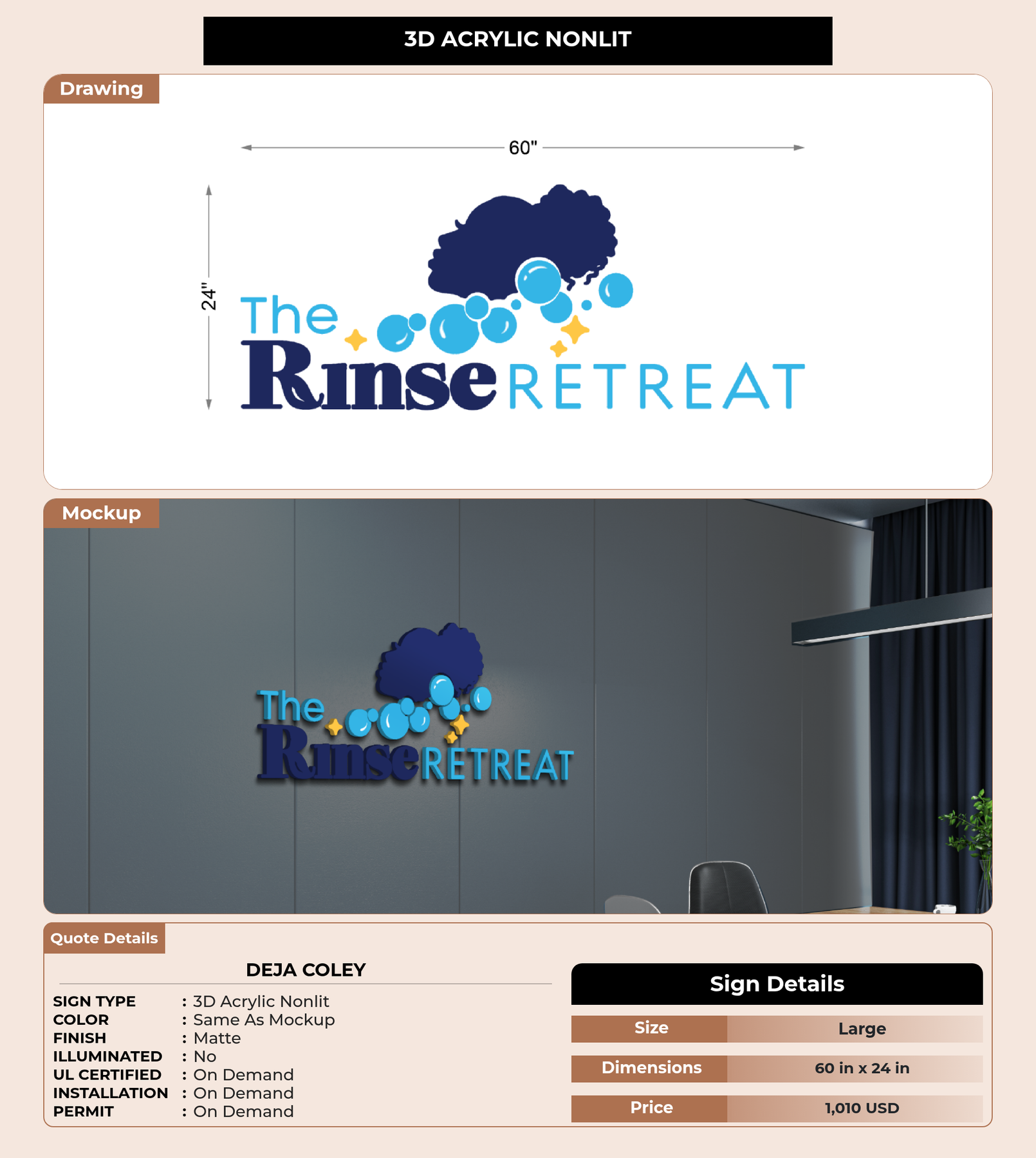 CUSTOM MOCKUP SIGN FOR DEJA COLEY