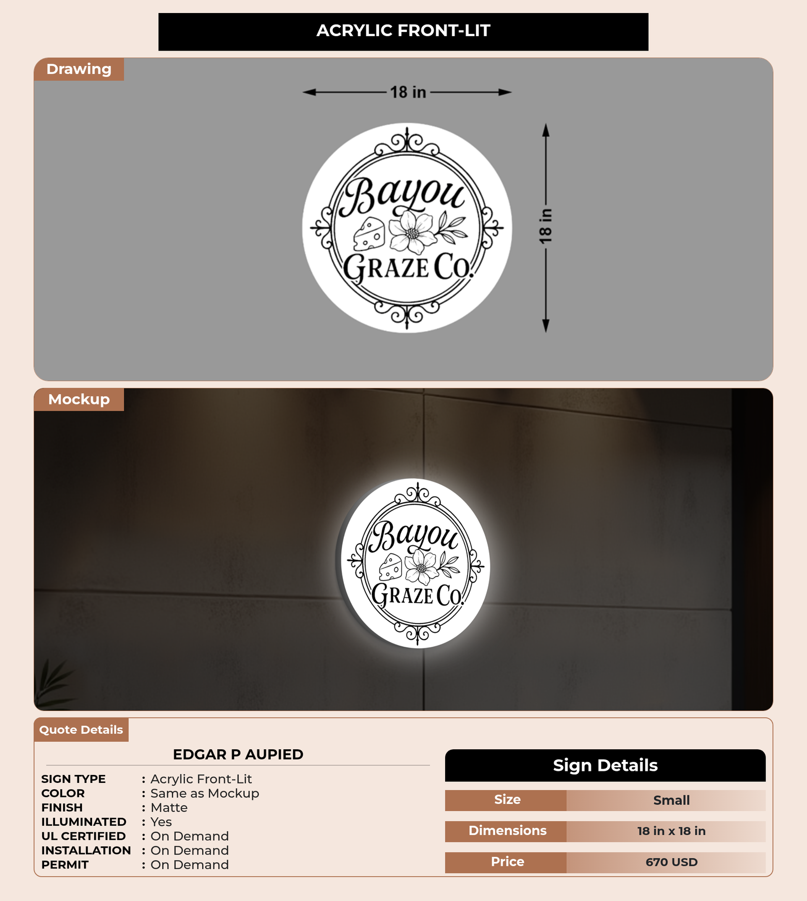 Crafted with premium material, this signage will elevate your business image, precisely mirroring your logo for a professional look.