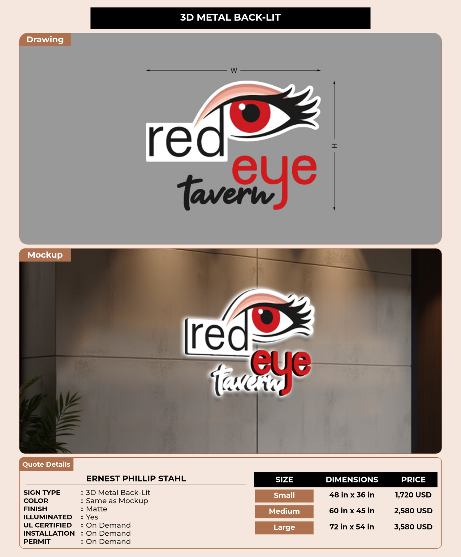 Eye-catching custom 3D sign for Ernest Phillip Stahl