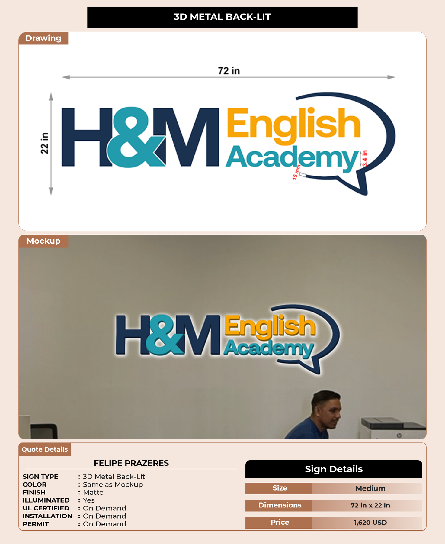 Crafted with premium material, this signage will elevate your business image, precisely mirroring your logo for a professional look.